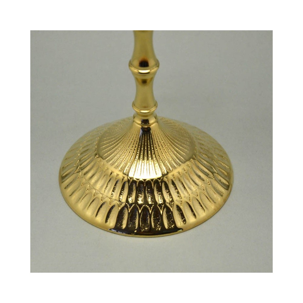 Candeliere da altare in ottone dorato con 5 fiamme, h 19 cm.