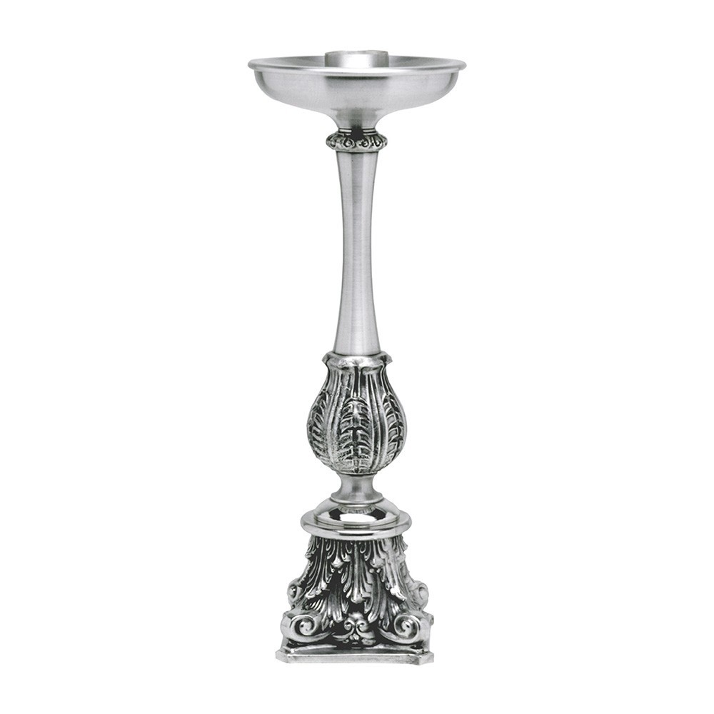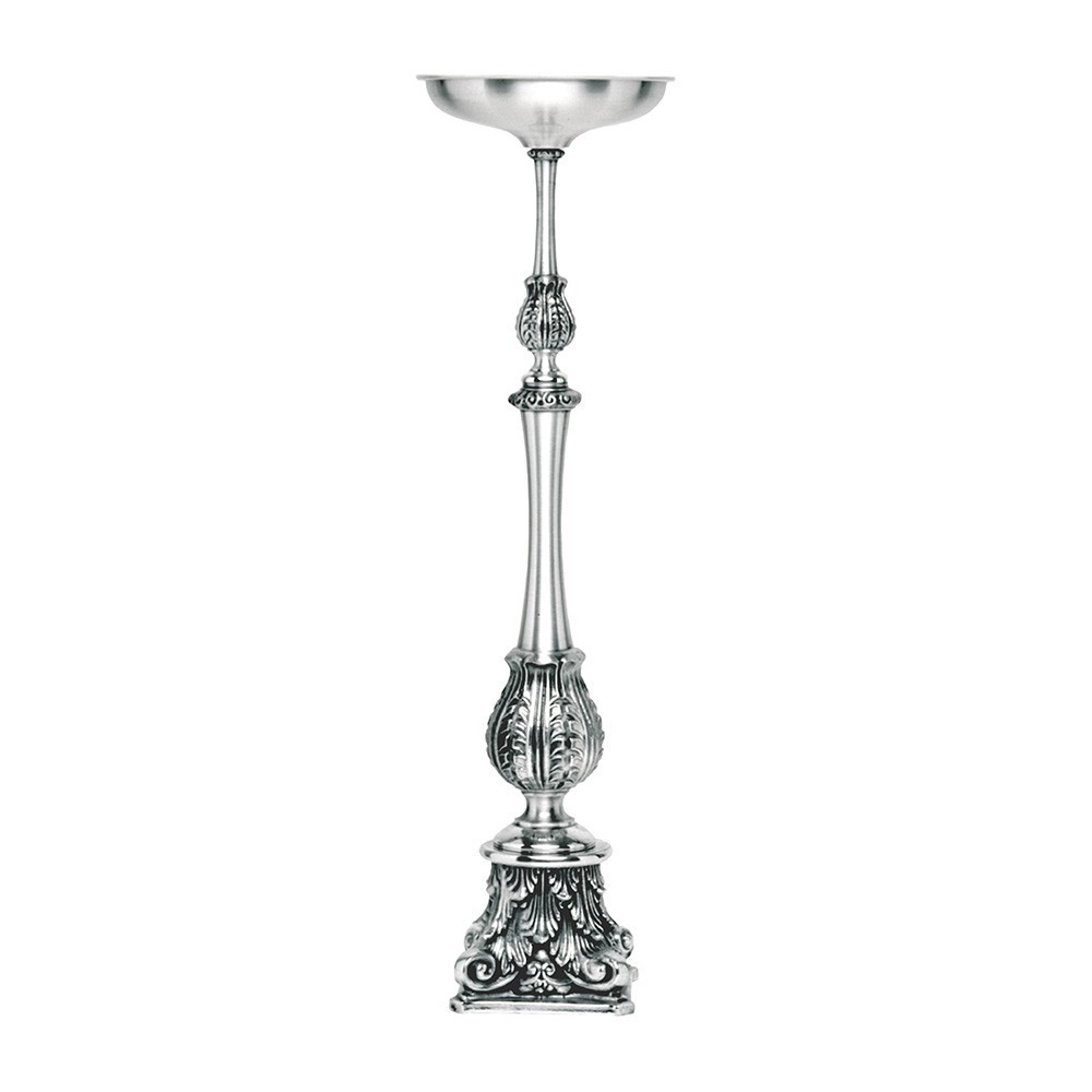 Candeliere da altare in metallo argentato.