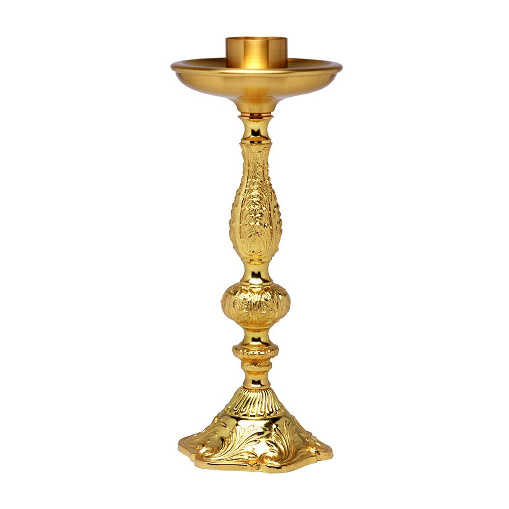 Candeliere da altare in ottone dorato.