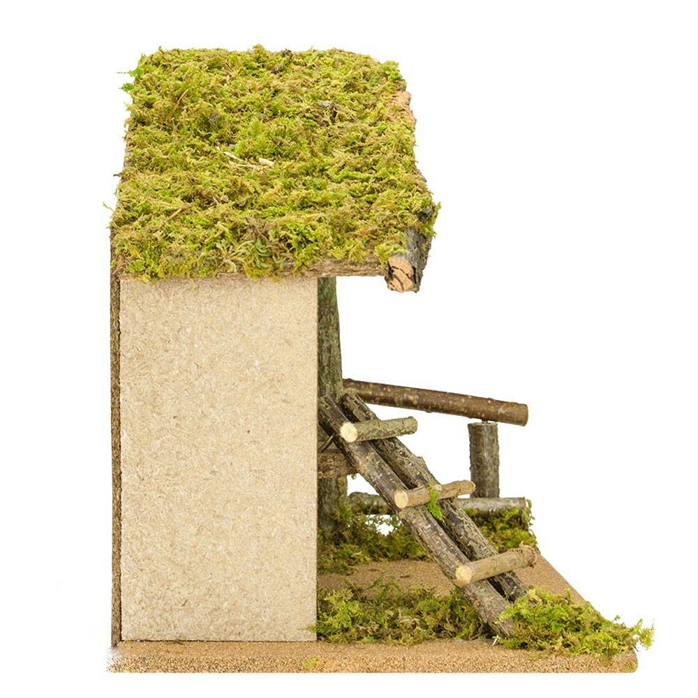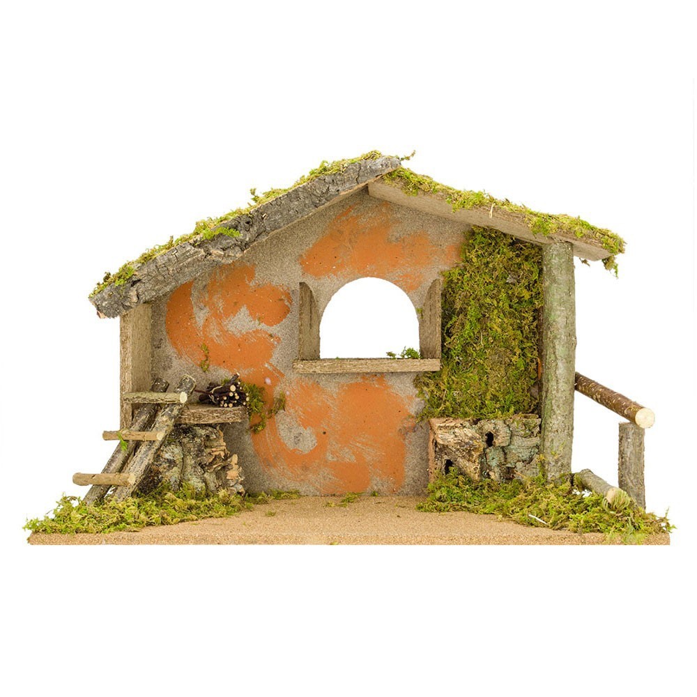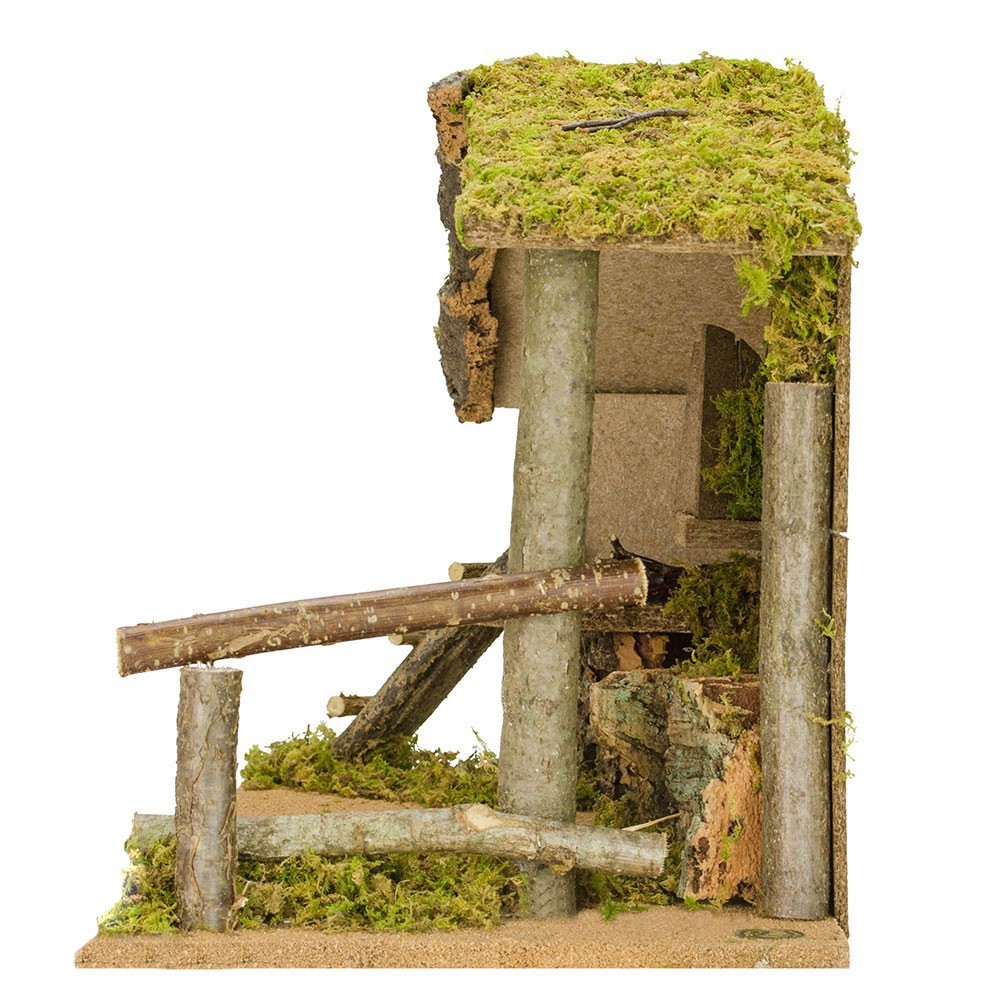 Capanna con Finestra per Natività 19 cm. Prodotta dalla Presepi Fontanini, leader nella produzione di personaggi, questa capanna è realizzata con legno e corteccia di sughero, muschio e tronchi di legno. Altezza Capanna: 32 cm, Base Capanna: 50x25.