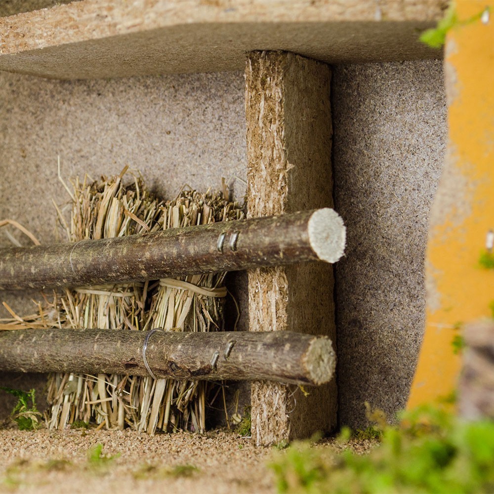 • MATERIALI: legno, tronchetti di legno, corteccia di sughero, fieno e muschio vero;