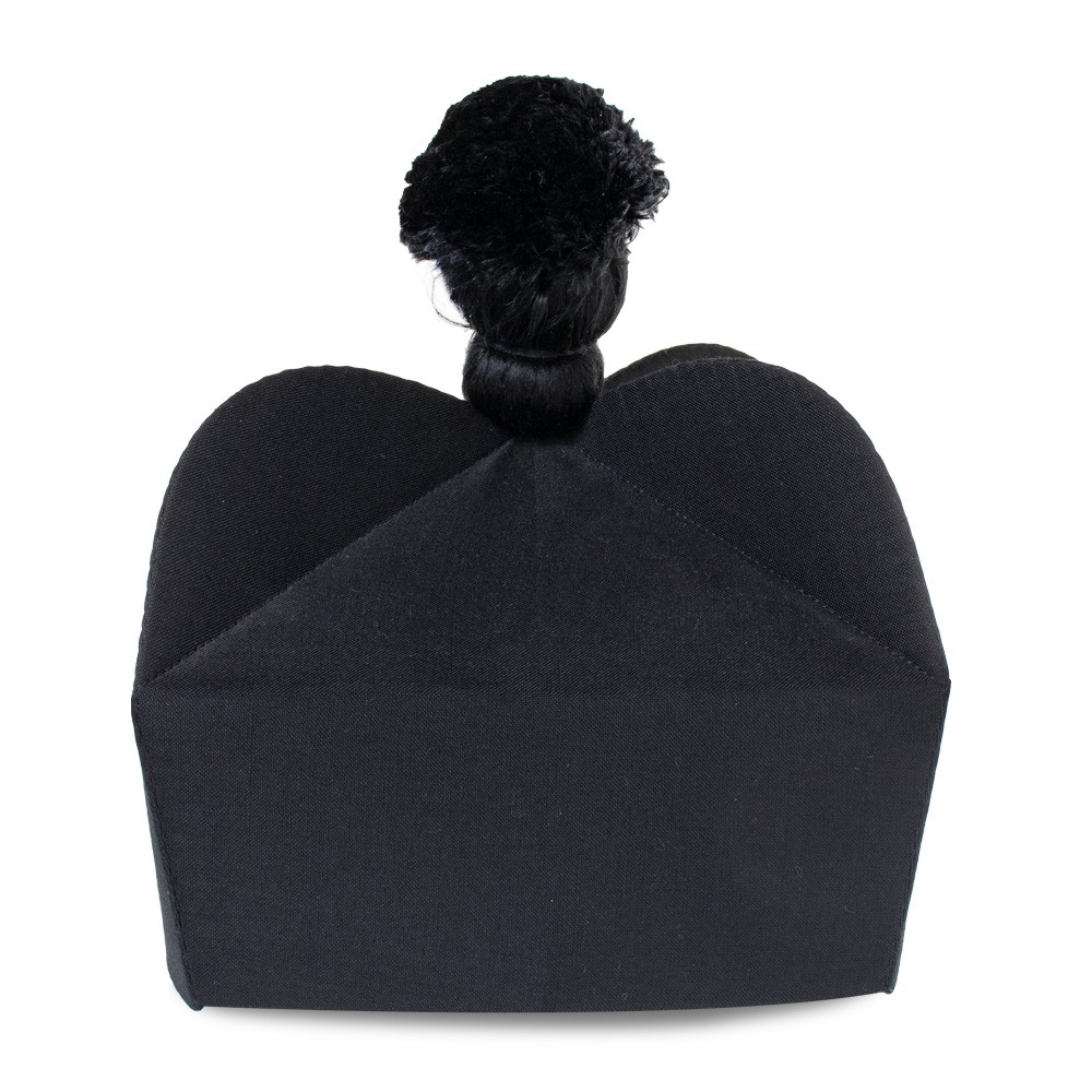 Berretta quadricorno con pon pon di colore nera.
