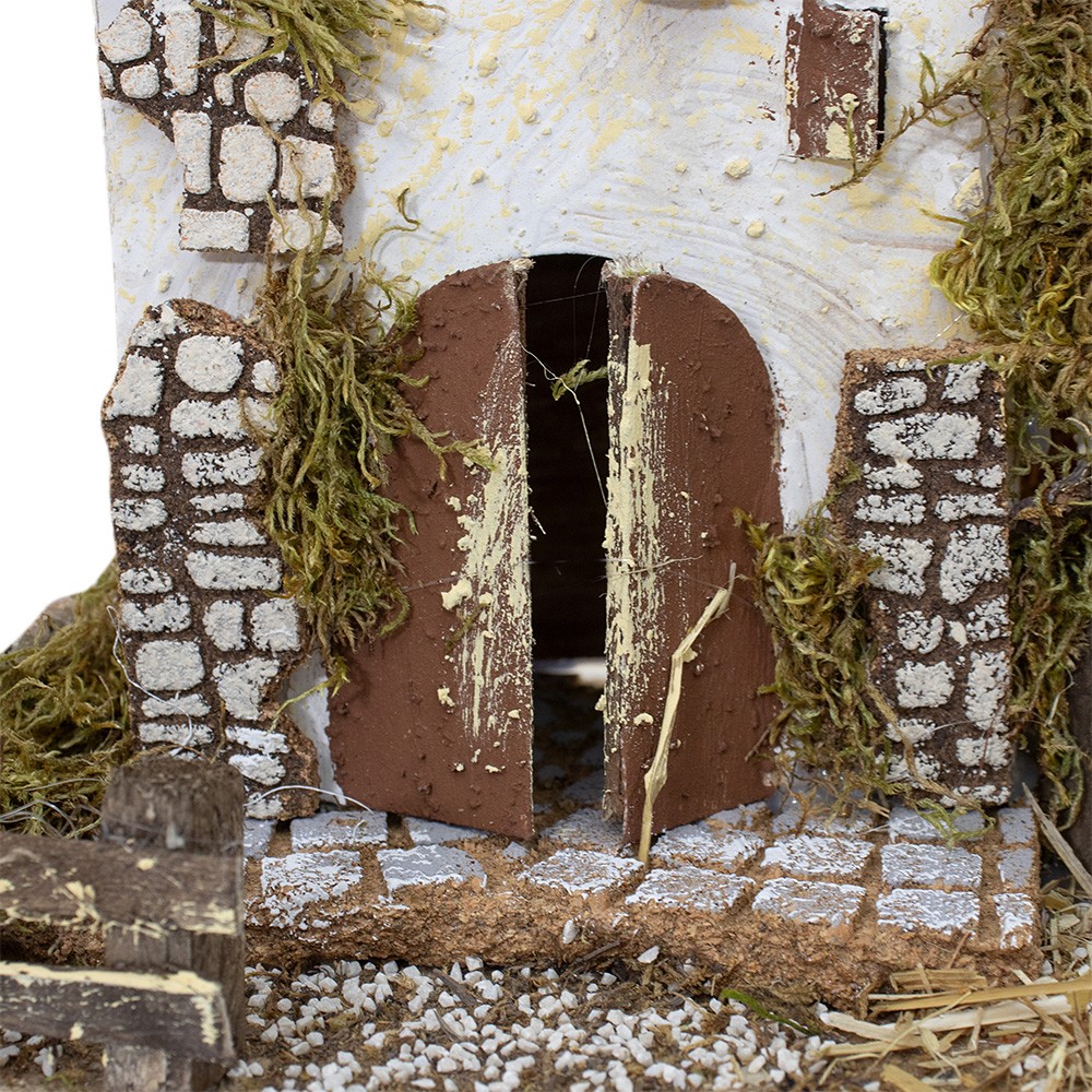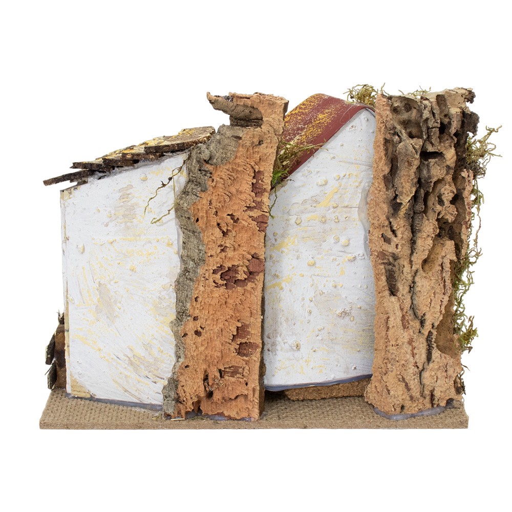 Casolare per il presepe in legno, sughero e muschio.
