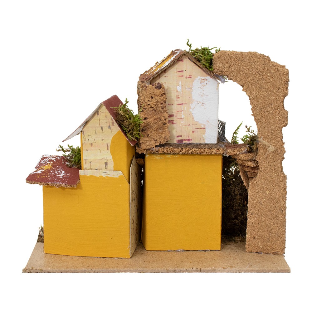 Casolare per il presepe in legno, sughero e muschio.