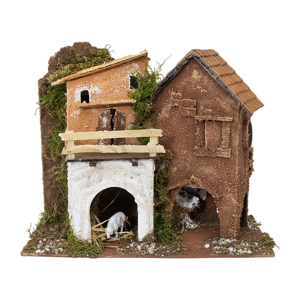 Casolare con case e stalla adatto per ambientazione presepe di 6 cm.