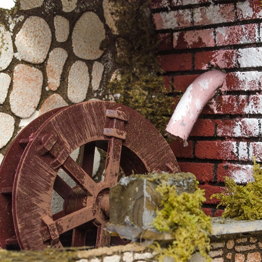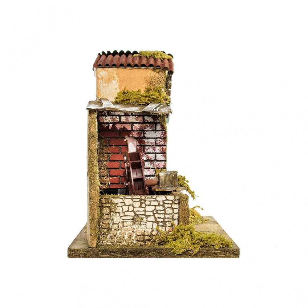 Casolare con Mulino ad acqua e pompa, adatto per scenografia presepe.