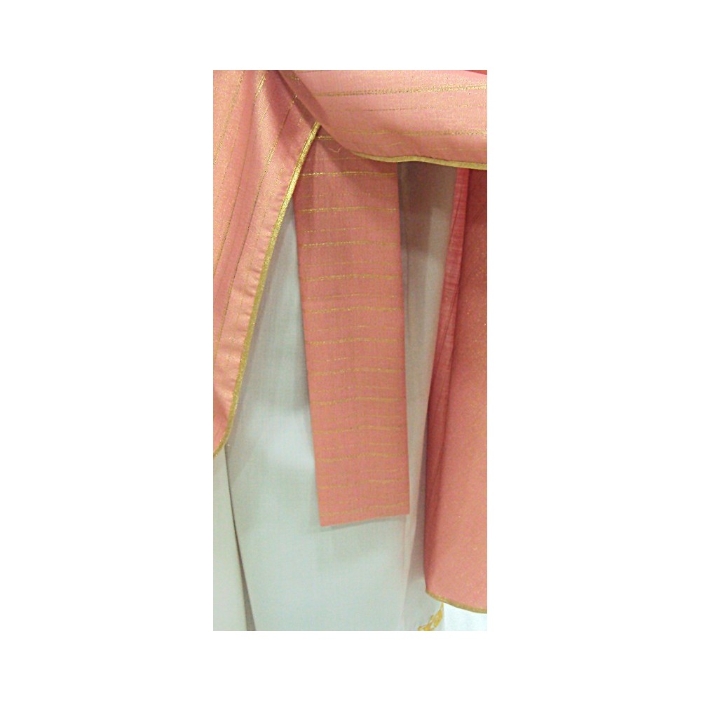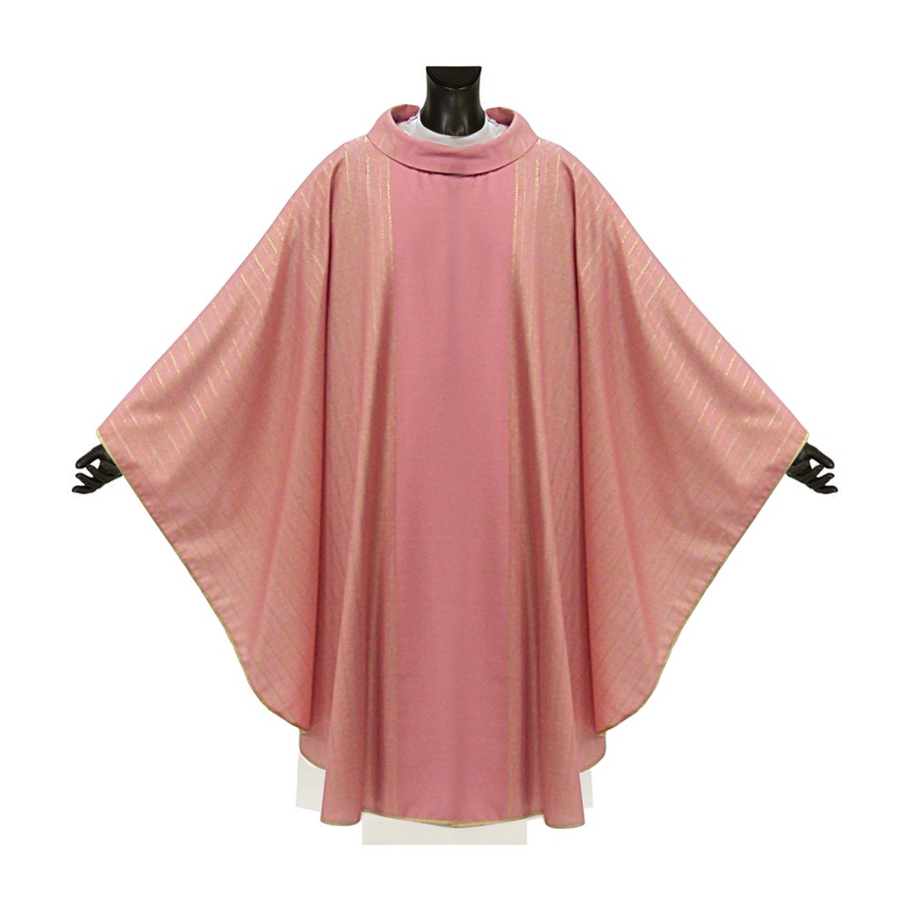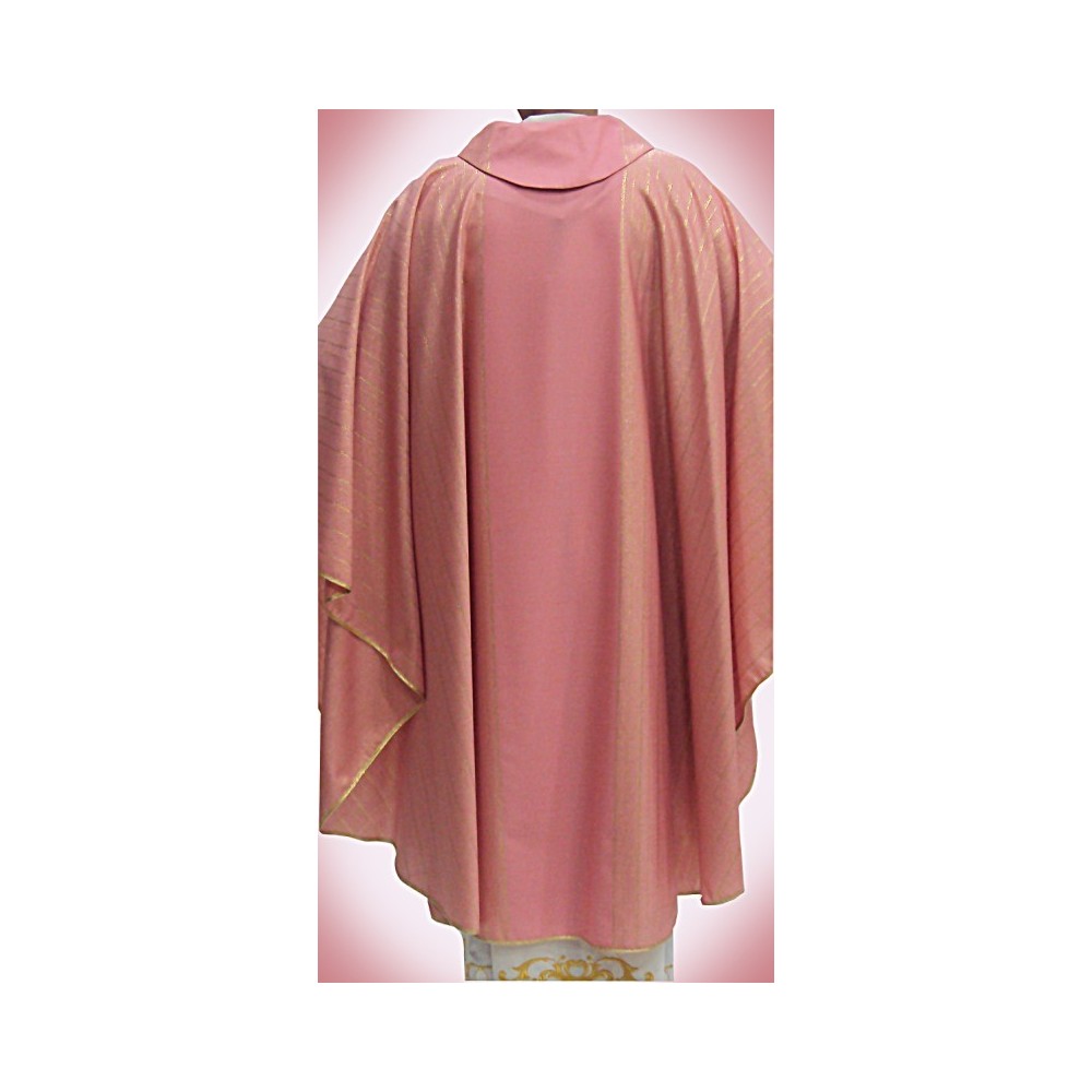 Elegante casula di colore rosa confezionata in misto lana con screziature dorate in lurex.
