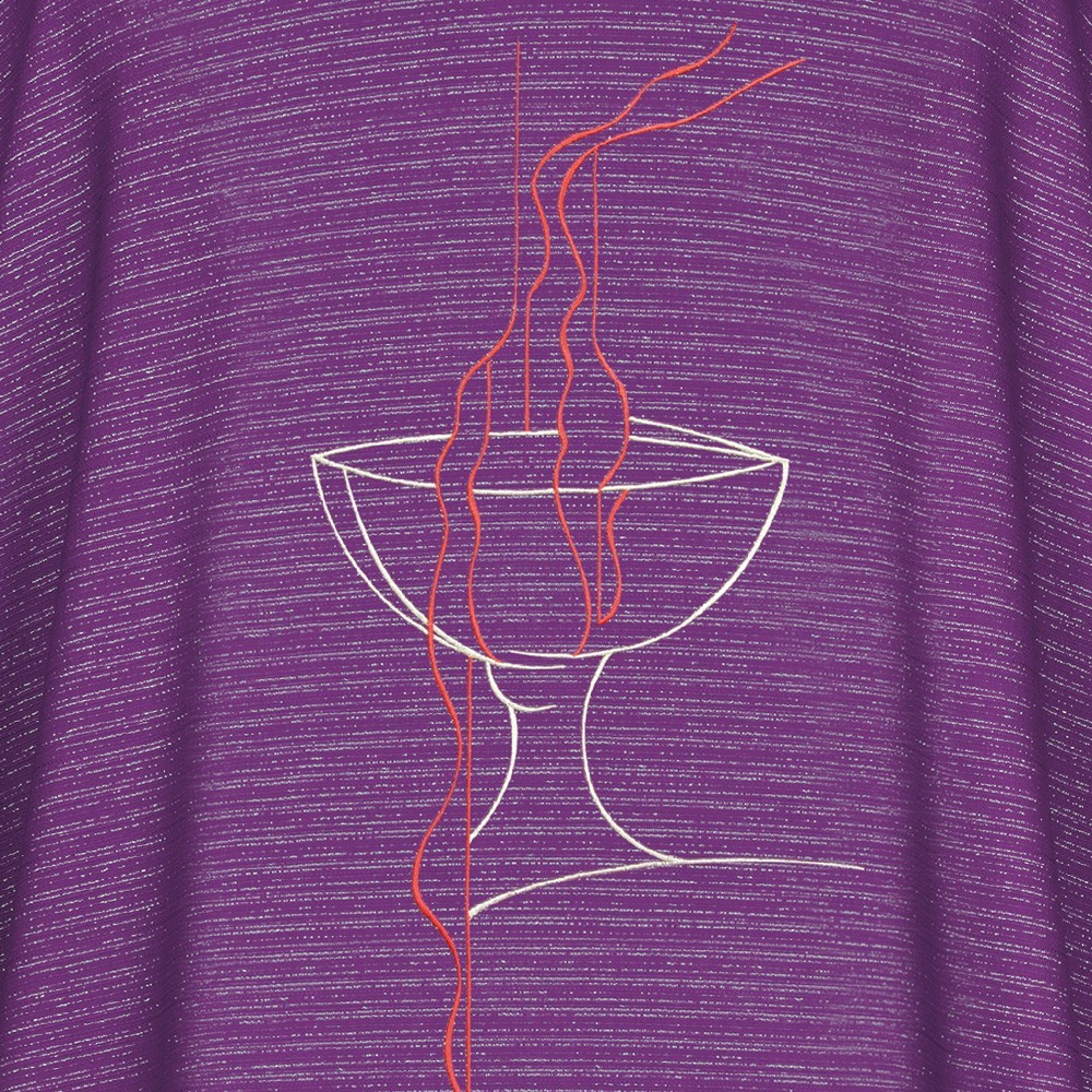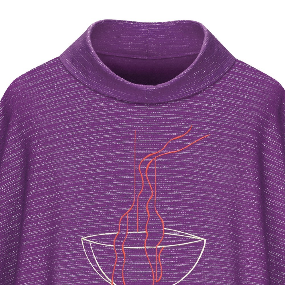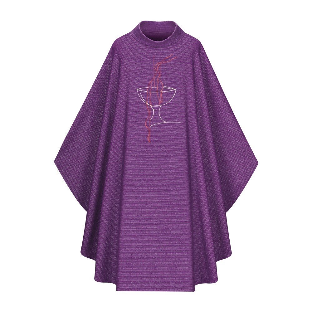Elegante casula liturgica di colore viola perfetta per l'Avvento con collo ad anello.