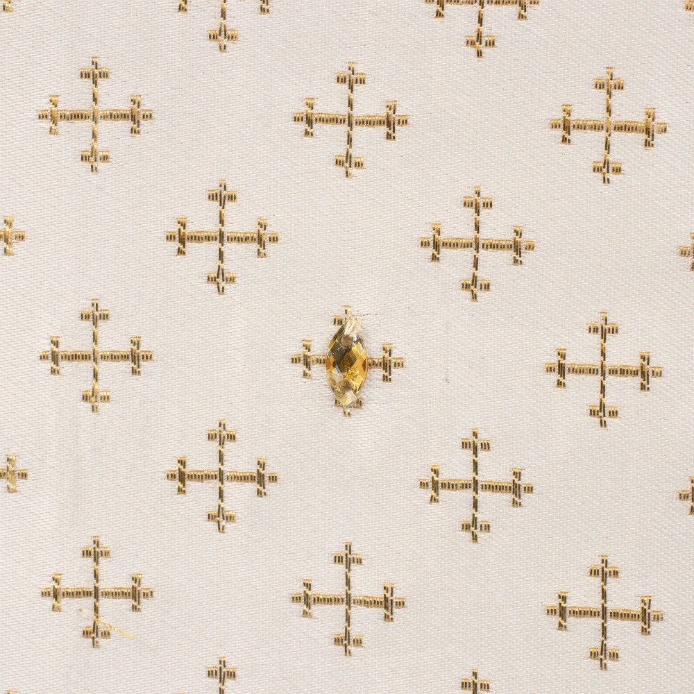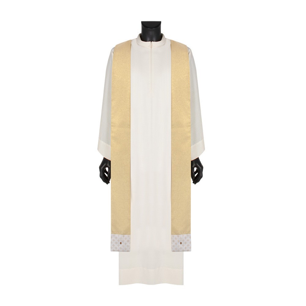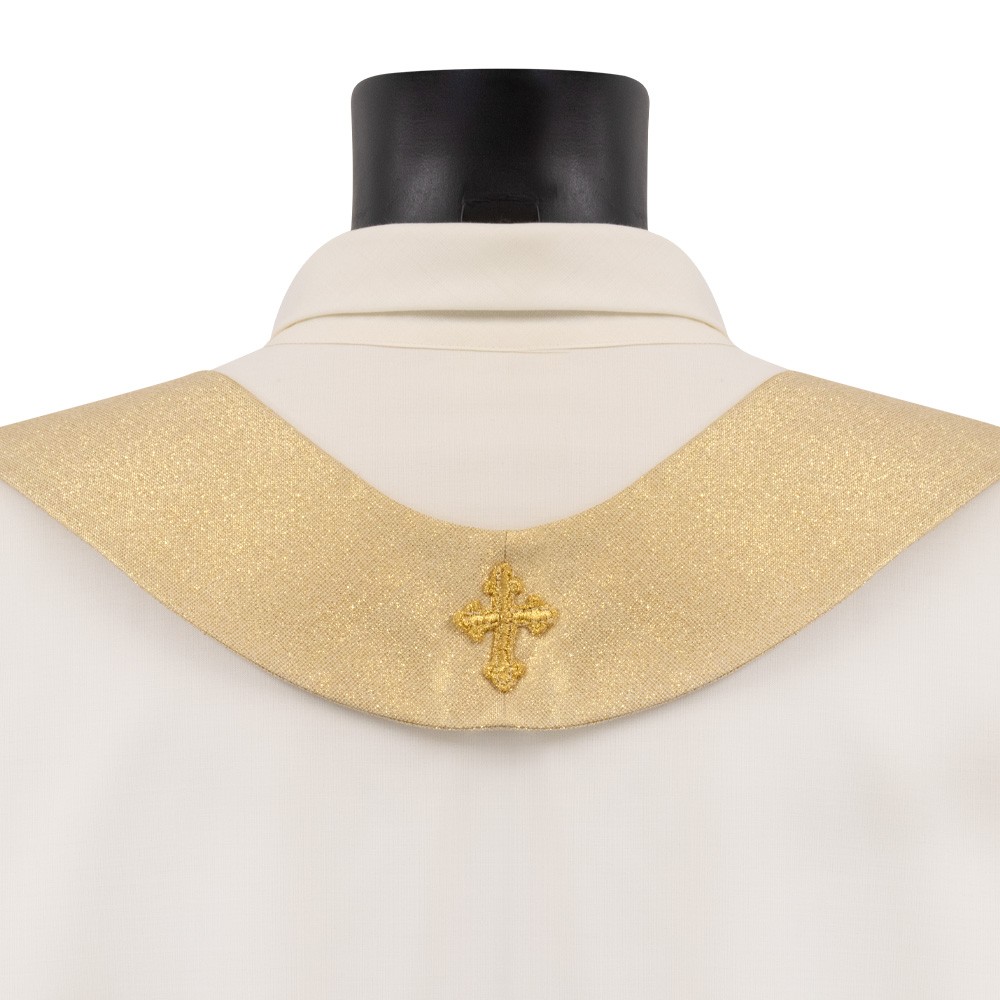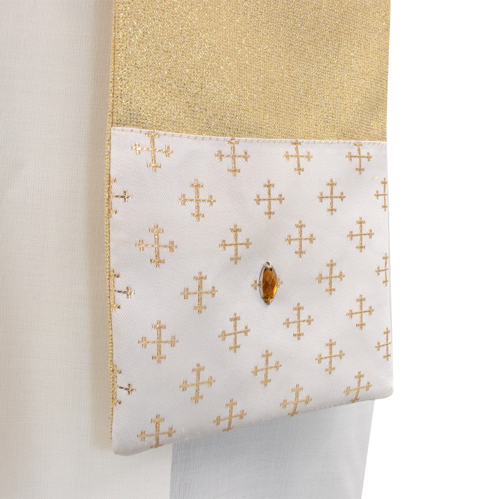 Casula sacerdotale con manto oro in elegante tessuto misto lana, seta e lurex.