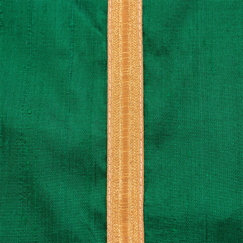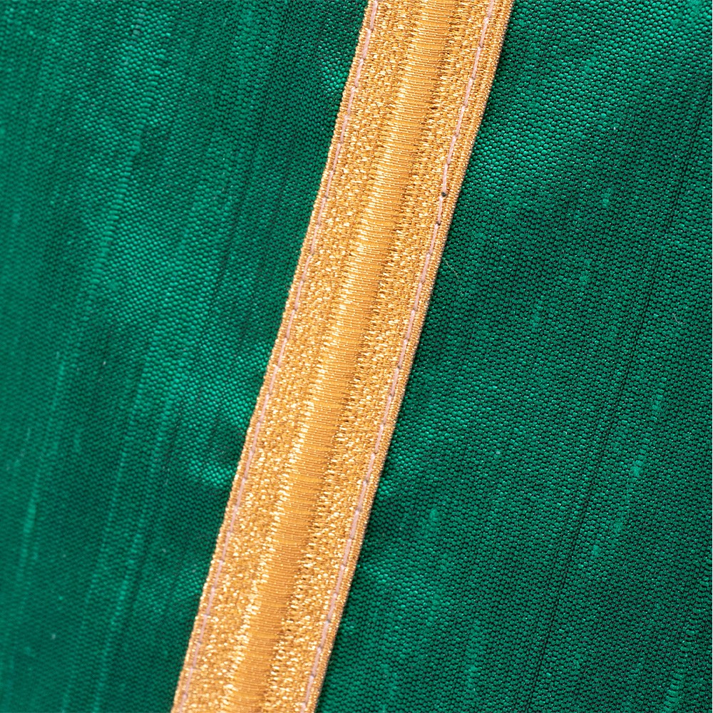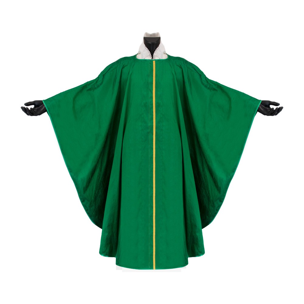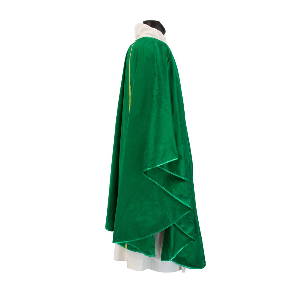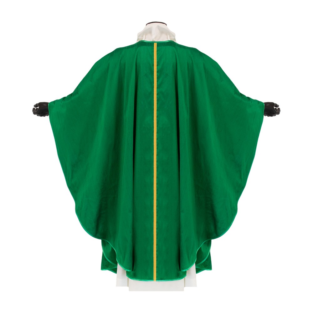Casula liturgica verde senza collo e gallone dorato.