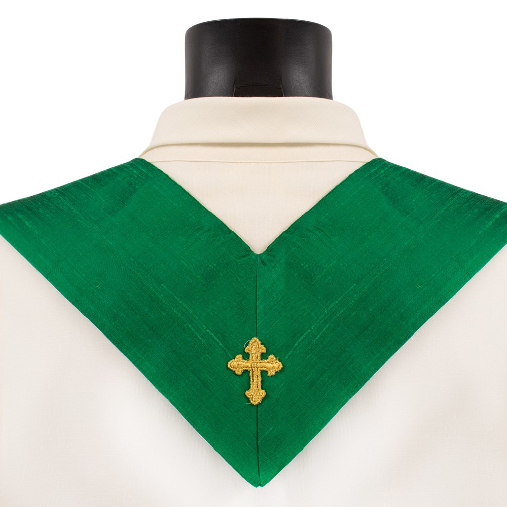 La casula è confezionata in tessuto misto seta.