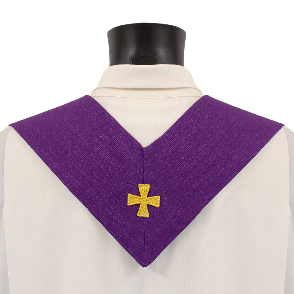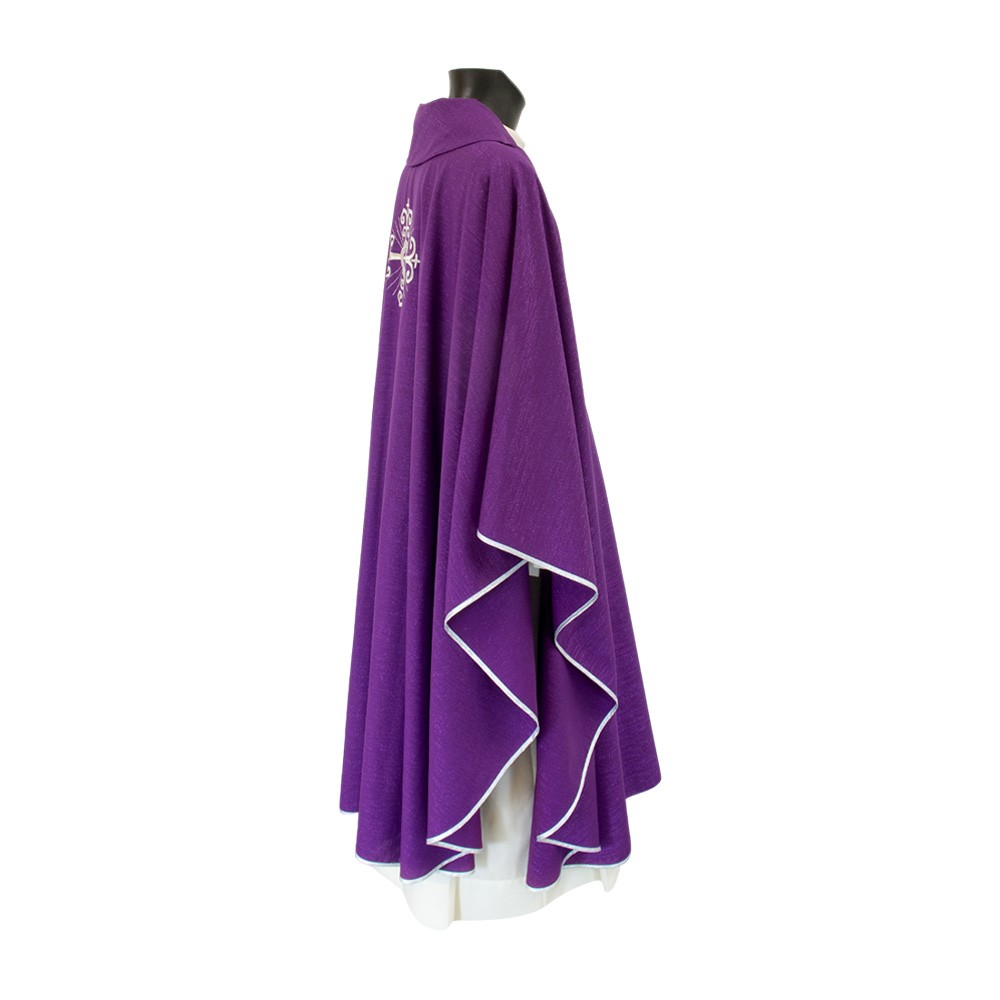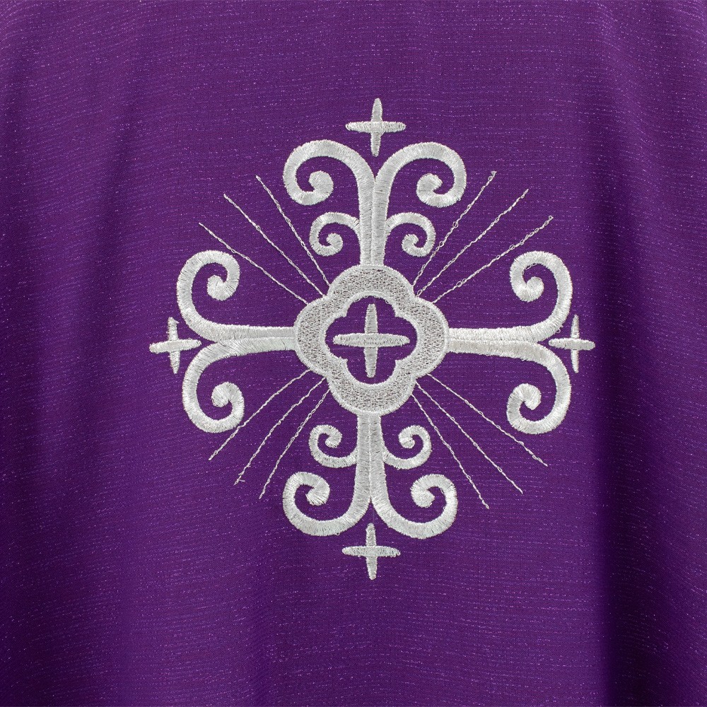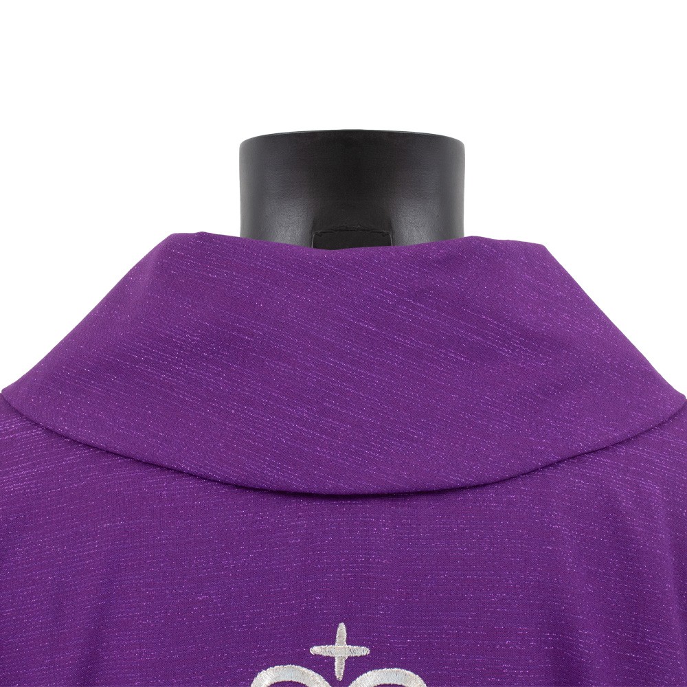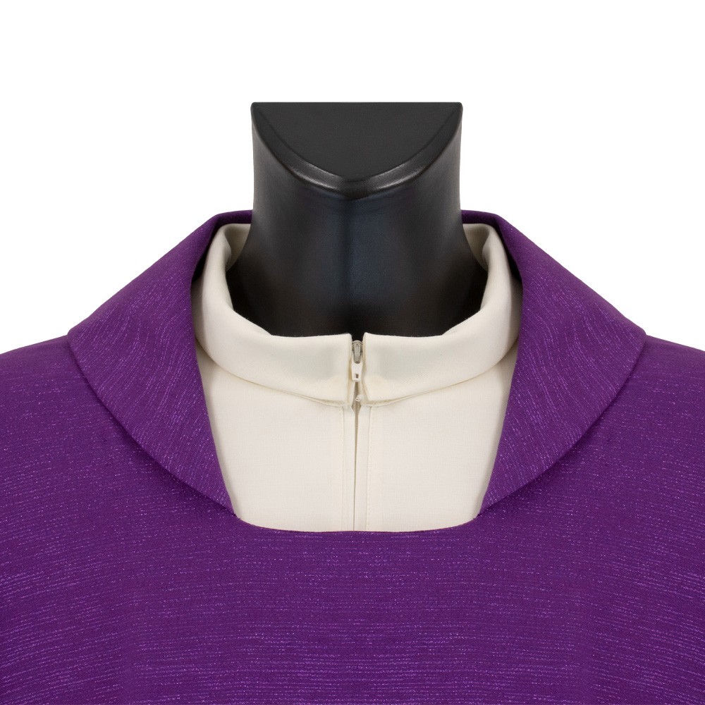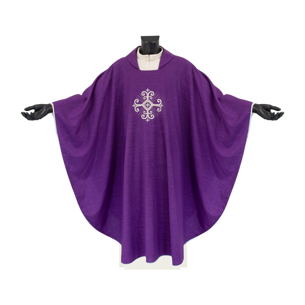 Casula sacerdotale viola confezionata in pregiato tessuto misto lana.