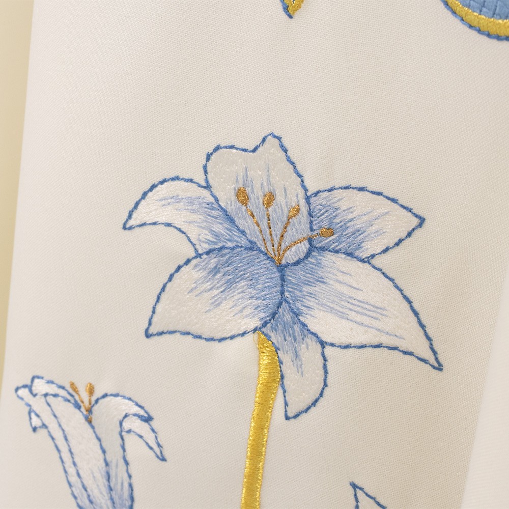 Paramento sacro con monogramma Mariano su tessuto 100% poliestere.