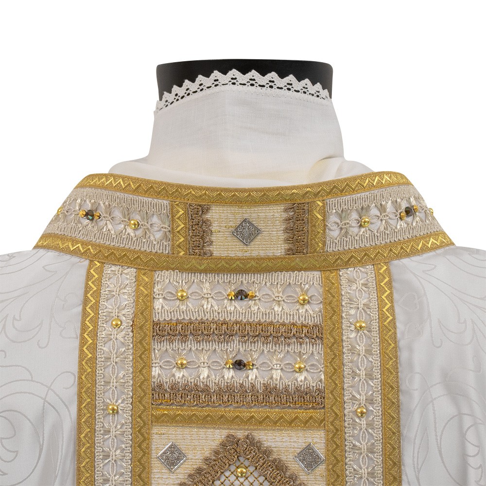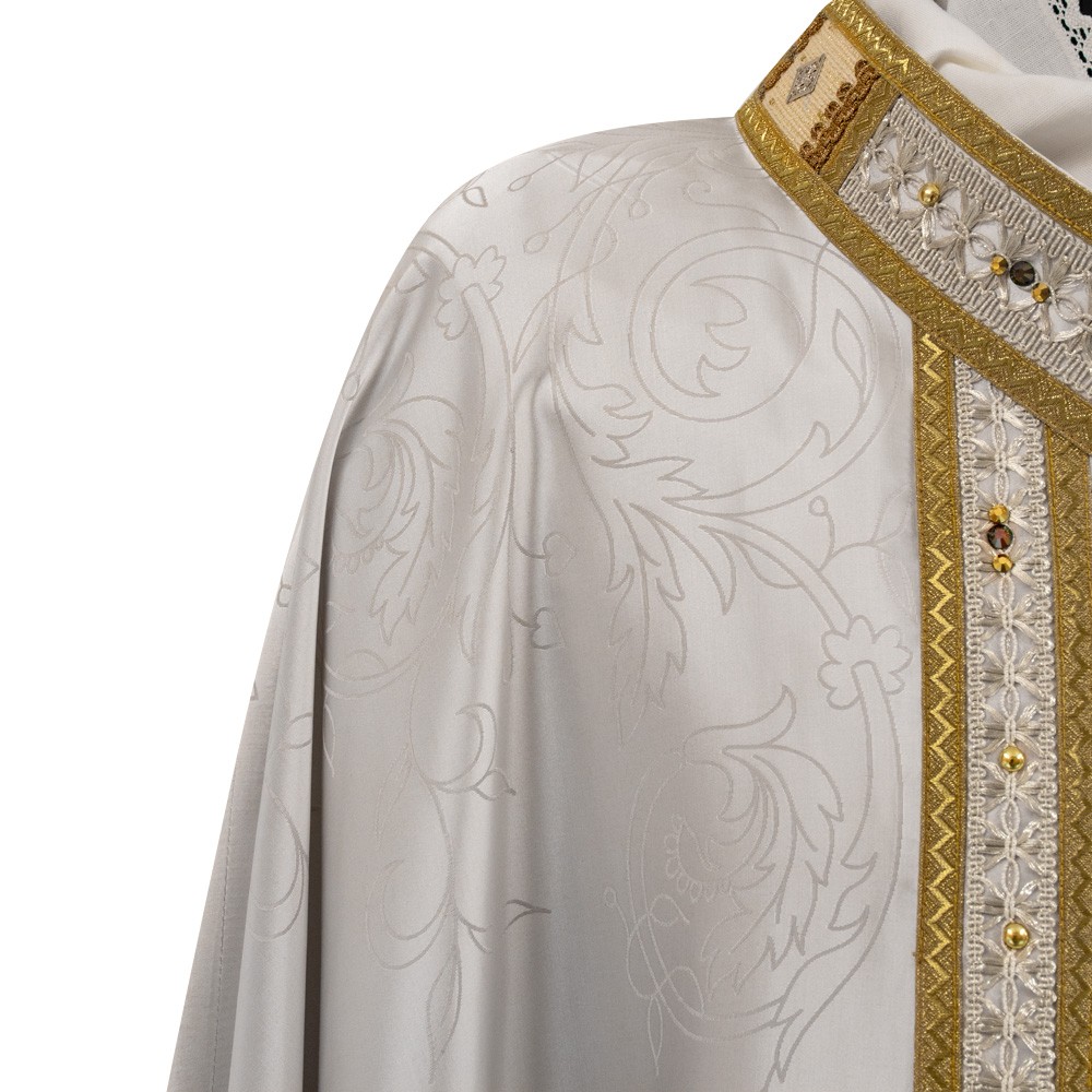 Casula sacerdotale con taglio modello gotico in tessuto misto viscosa e acetato.