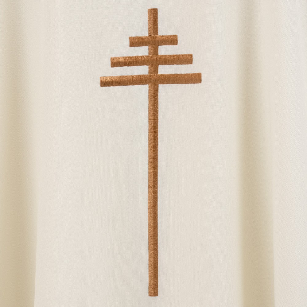 Casula sacerdotale color avorio con immagine ricamata di "SAN CHARBEL".