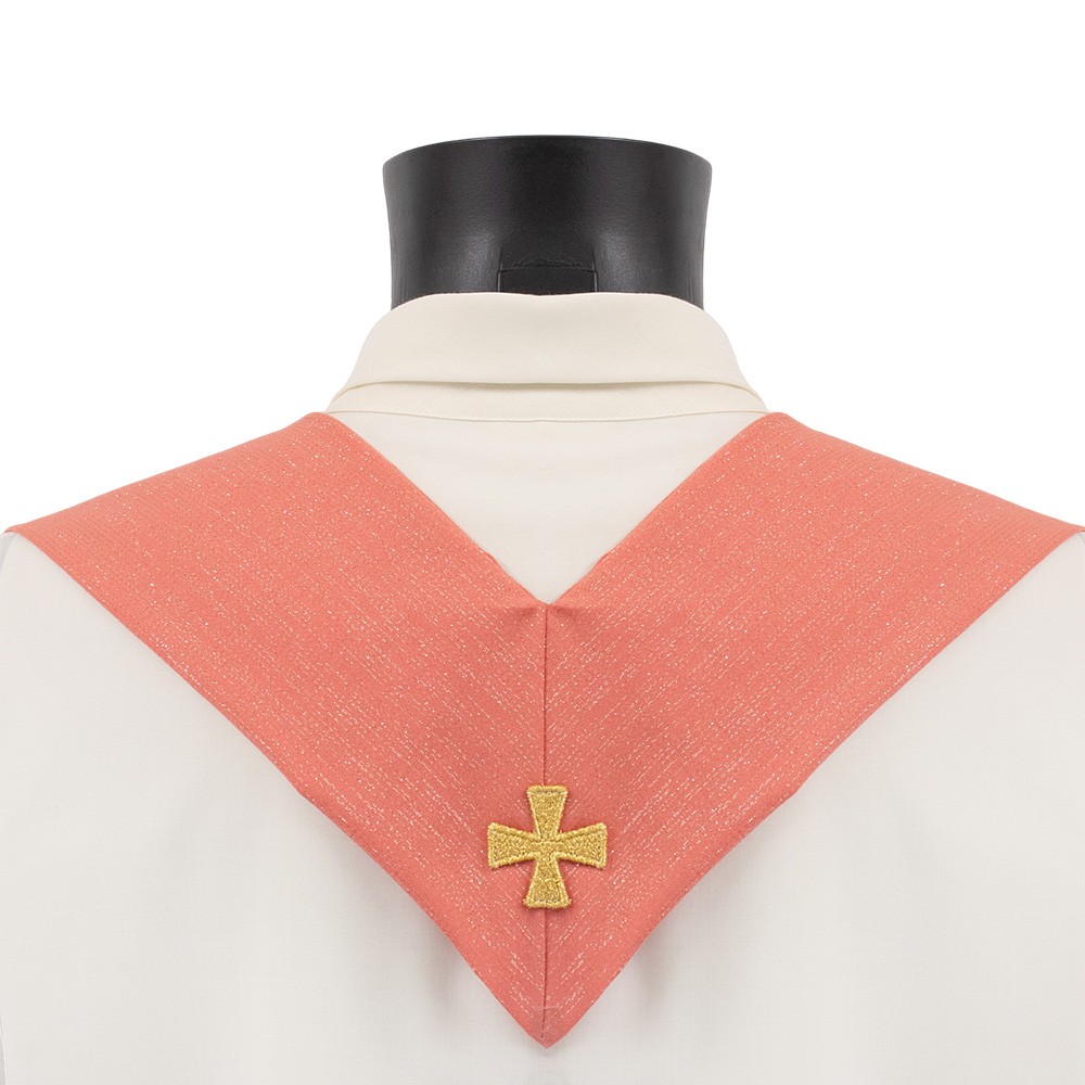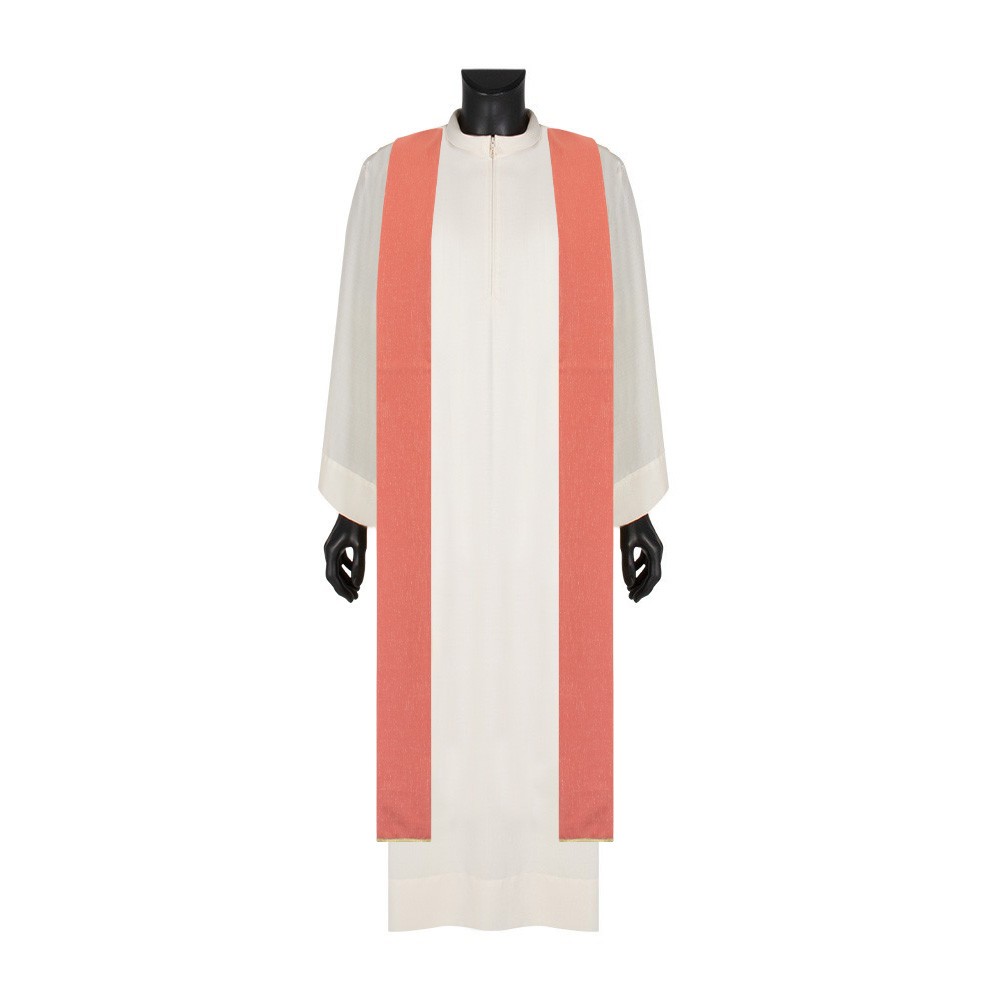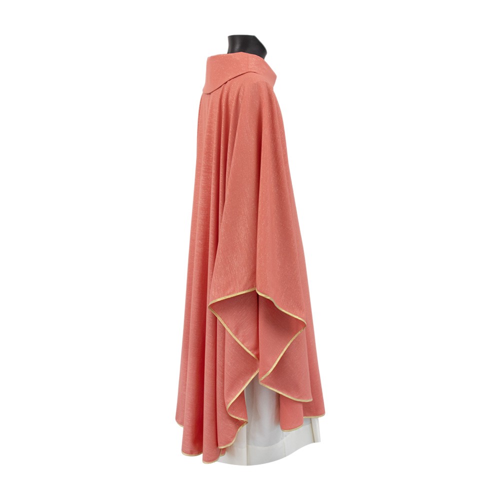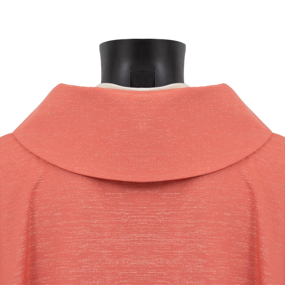 Casula sacerdotale rosa con collo ad anello e priva di ricami.