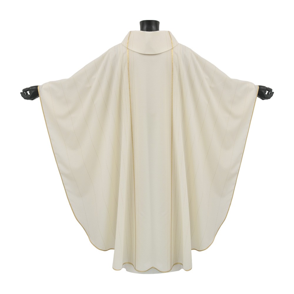 Casula rigata avorio per sacerdote realizzata con collo ad anello in leggerissimo tessuto misto lana.