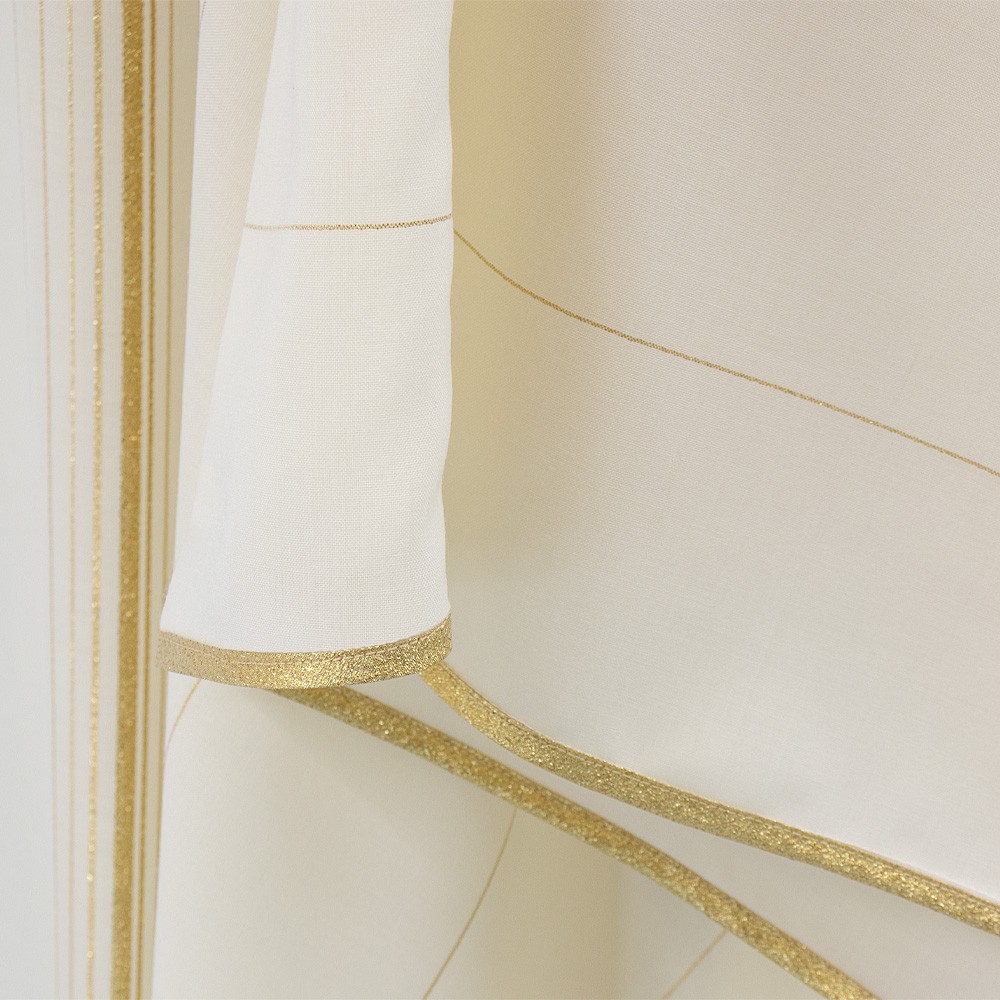 Questo paramento liturgico si presenta con righe molto sottili creando sfumature molto gradevoli, rendendo l'articolo elegante e luminoso.