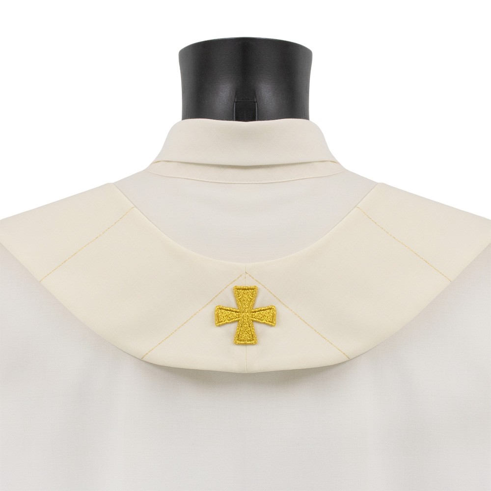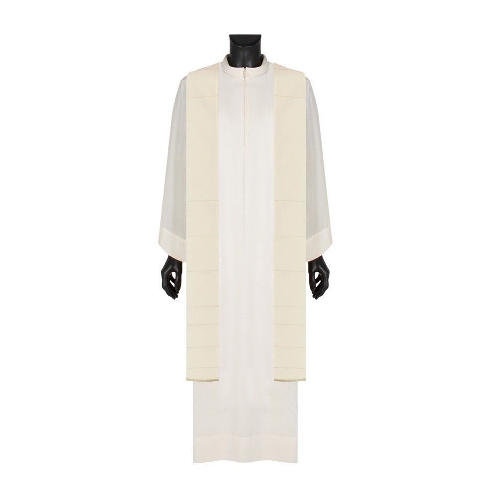Il collo ad anello e l'ampio taglio donando un'ottima vestibilità al paramento sacro.