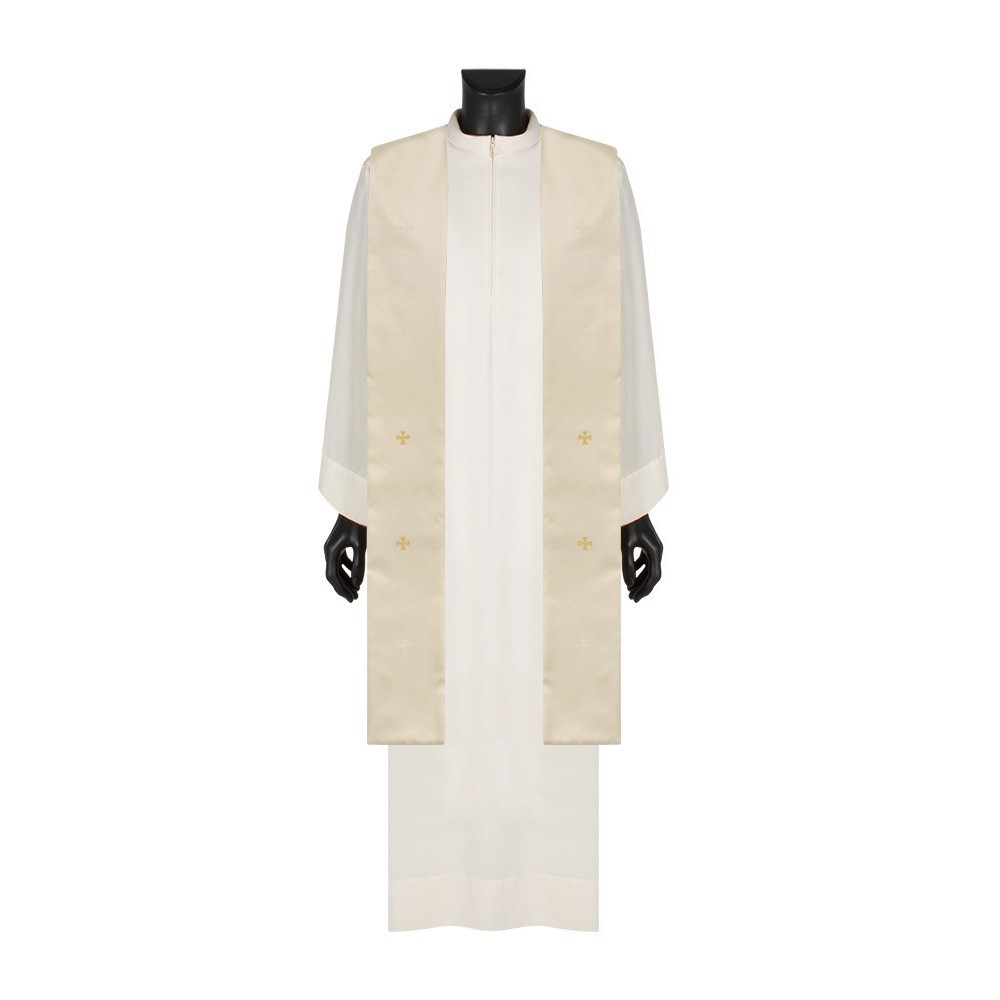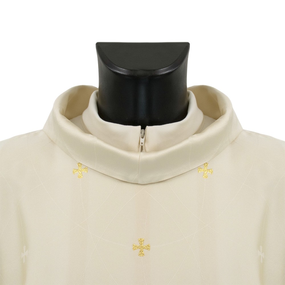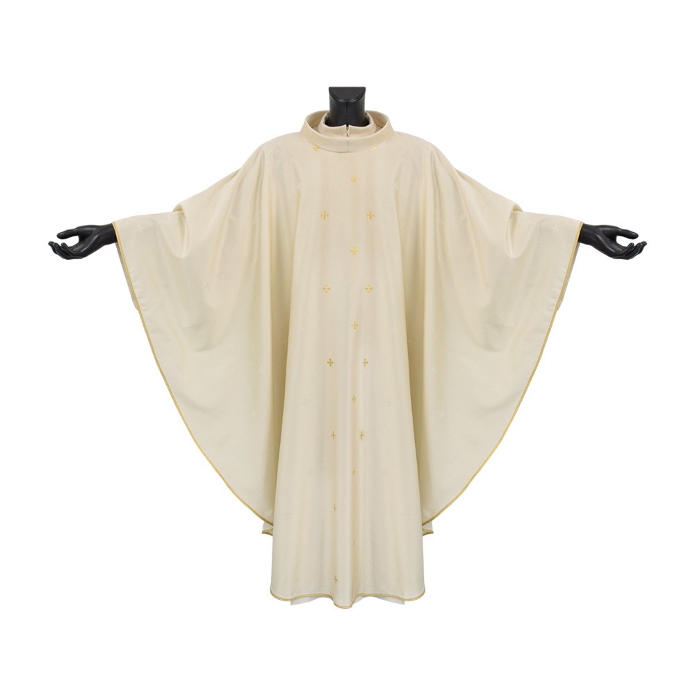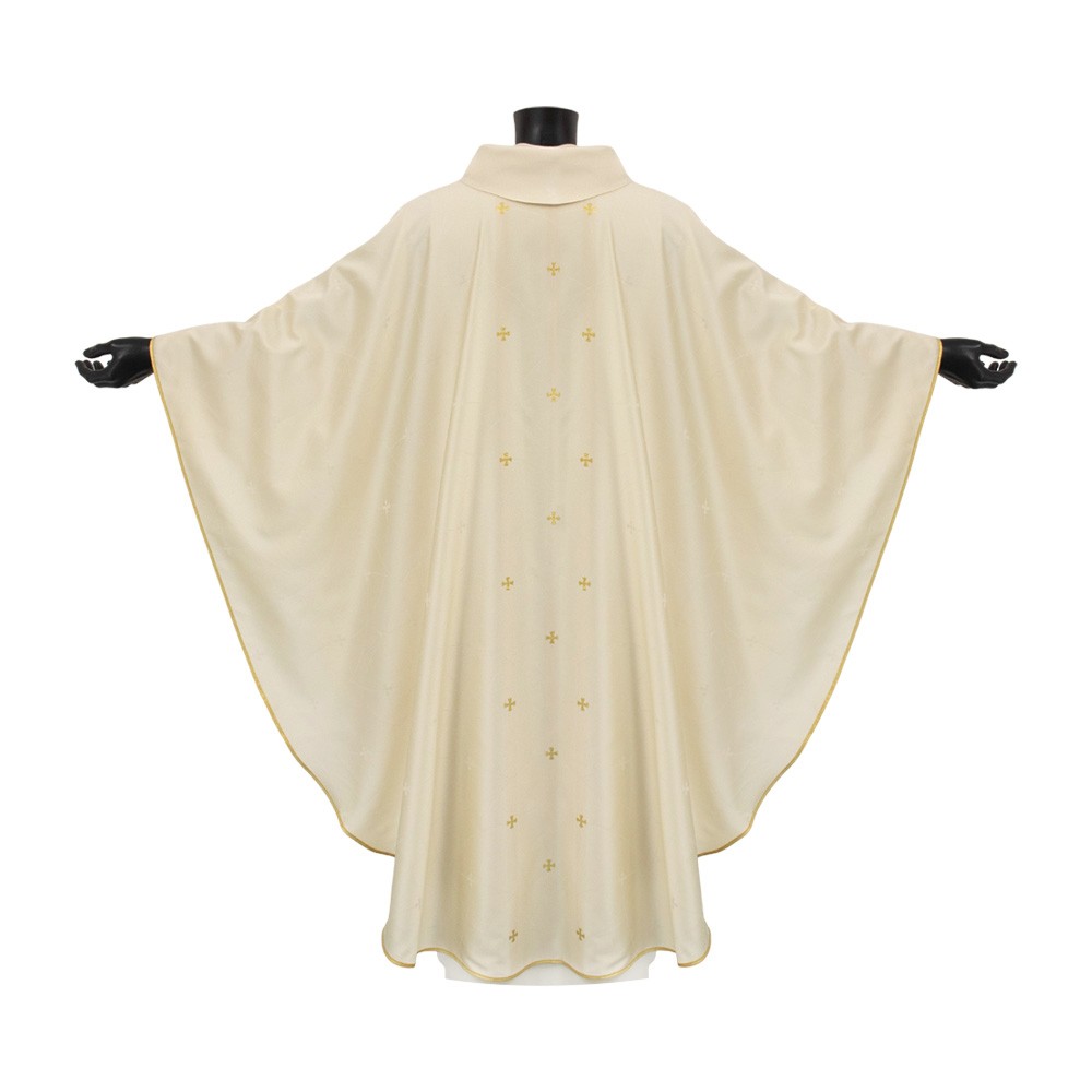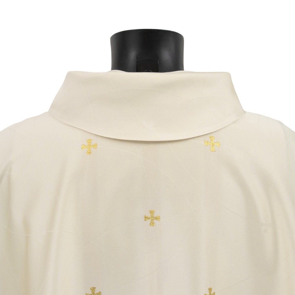 Casula liturgica confezionata in leggero poliestere con ricamo di croci dorate.