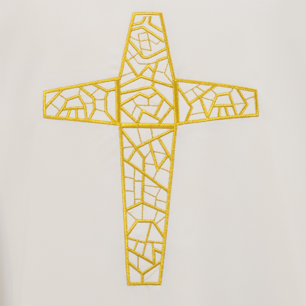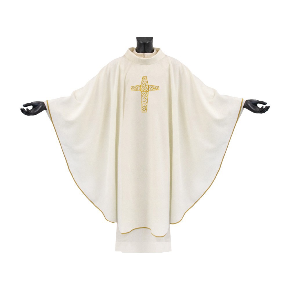 Casula sacerdote ricamo croce, confezionata in fresco e resistente poliestere.