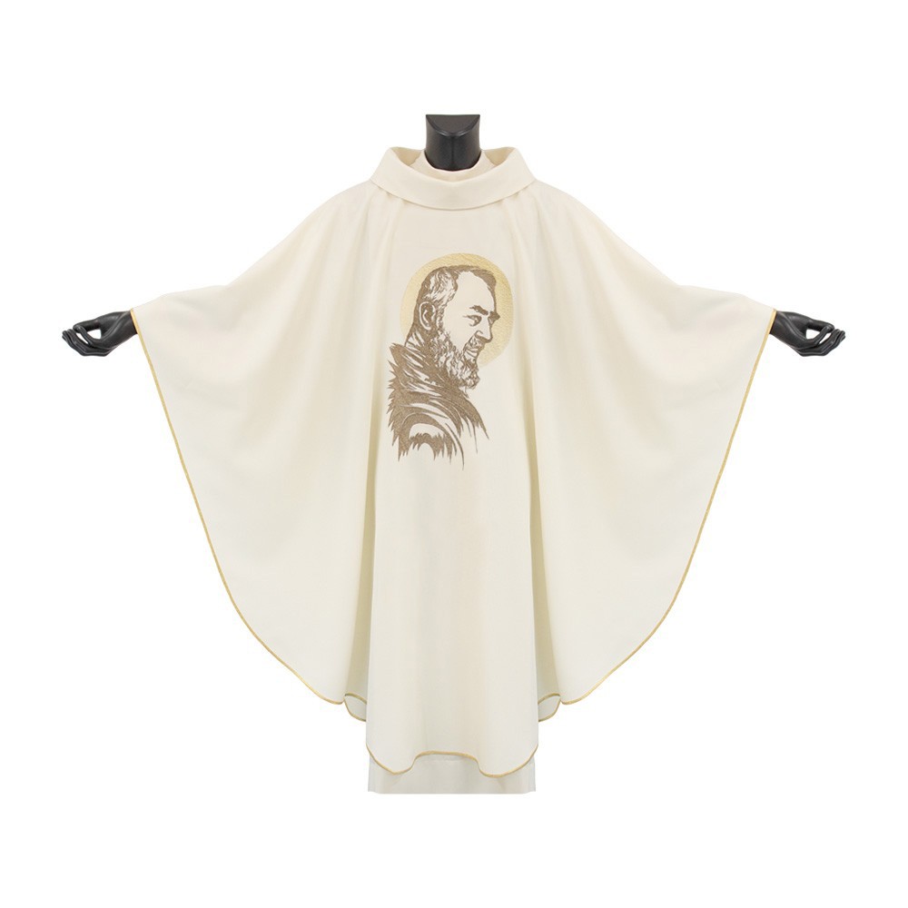 Casula sacerdotale con immagine ricamata di "SAN PIO".