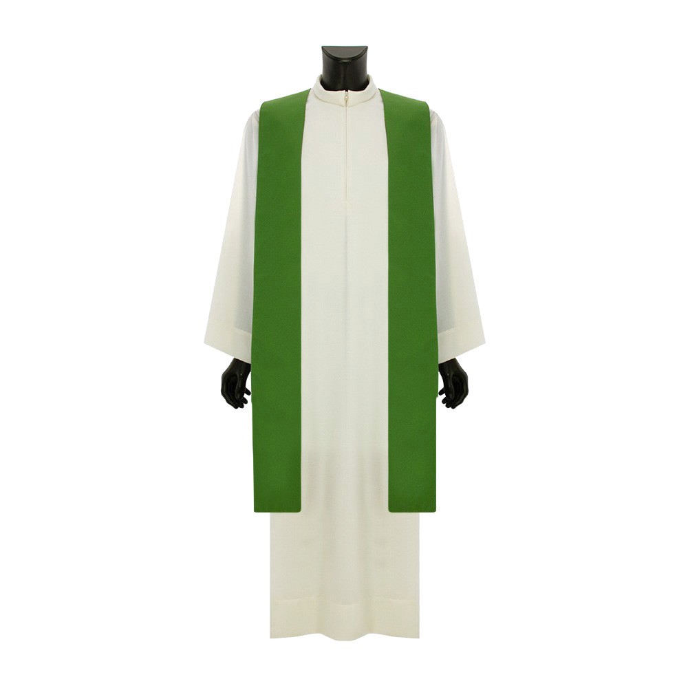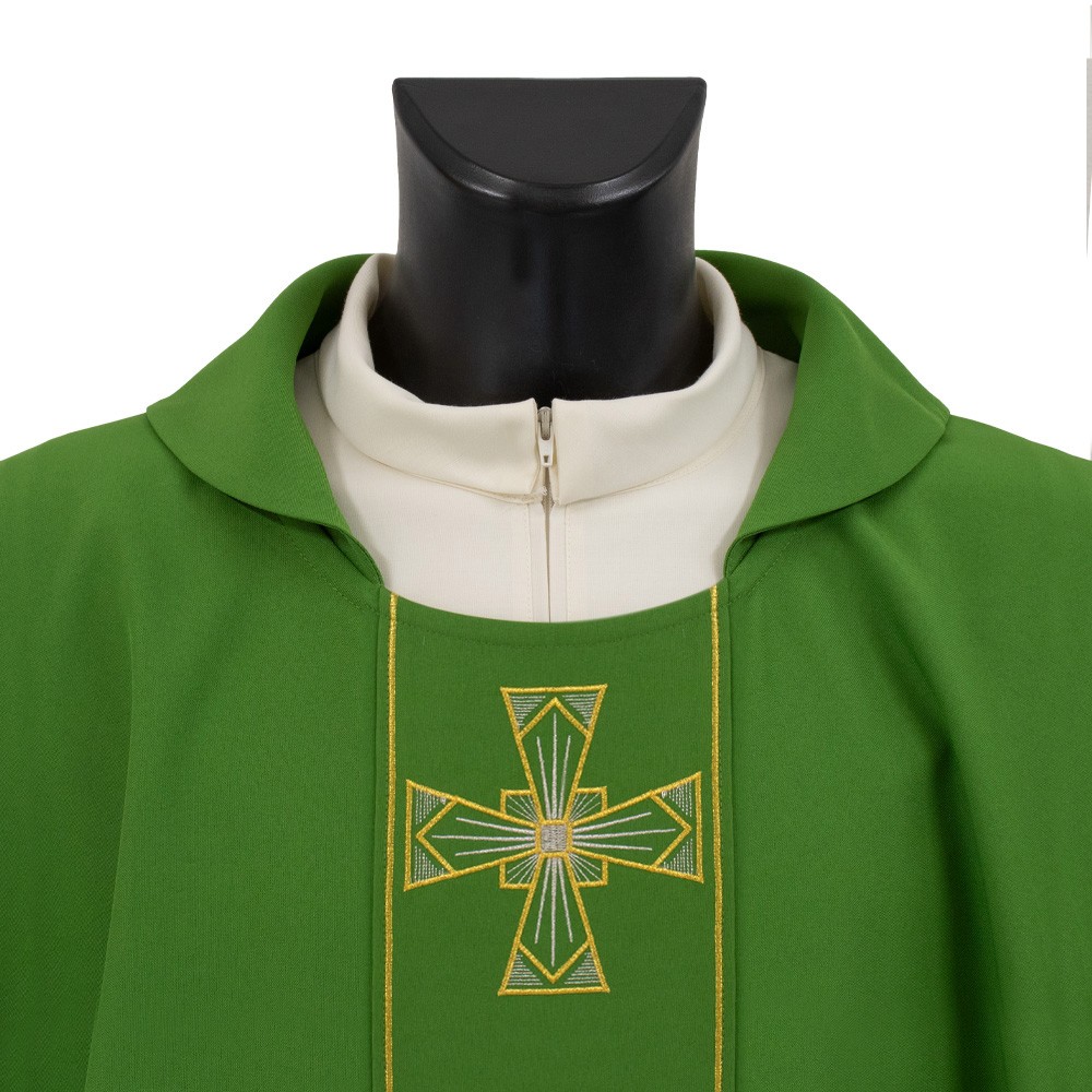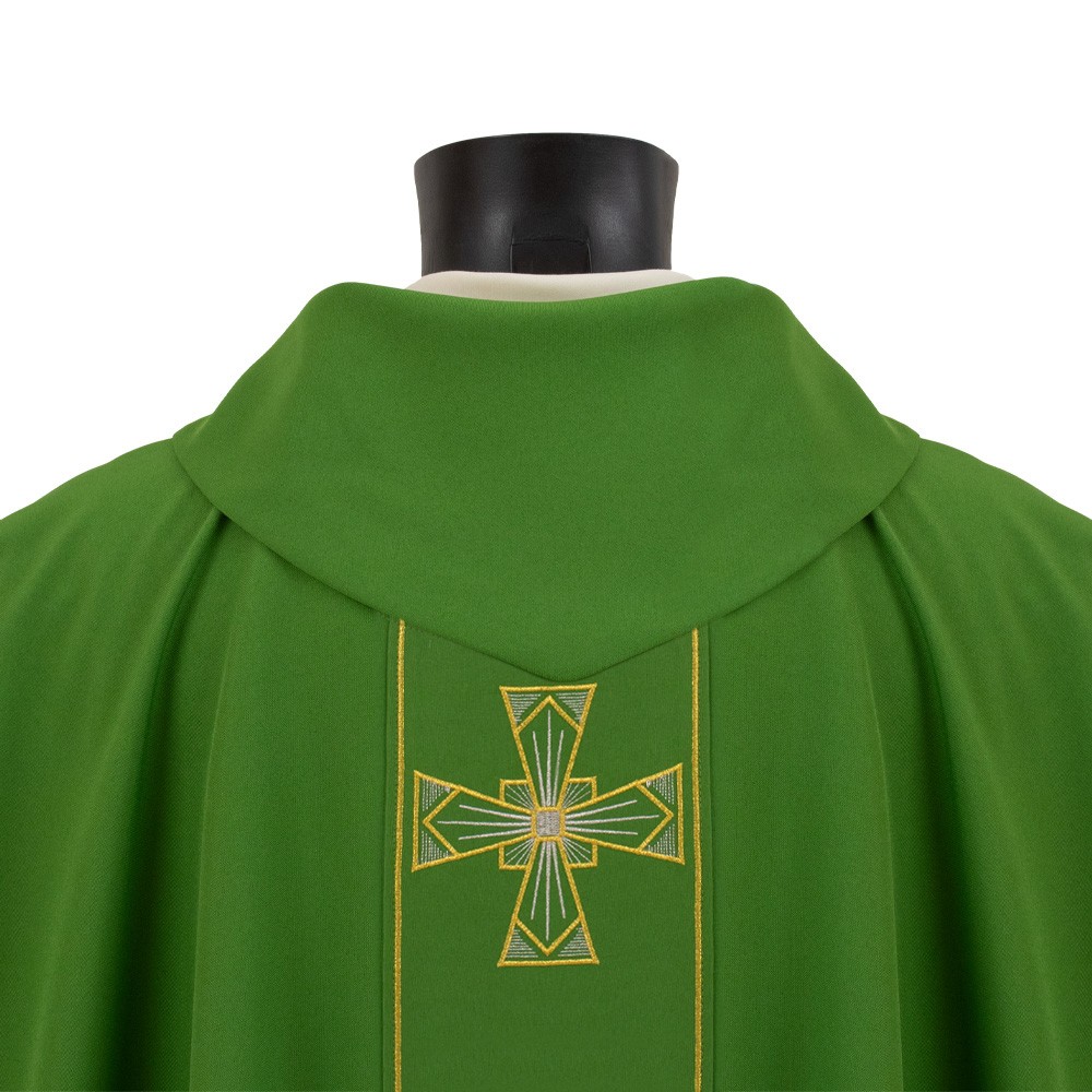 Casula sacerdotale in tessuto poliestere con stolone ricamato.