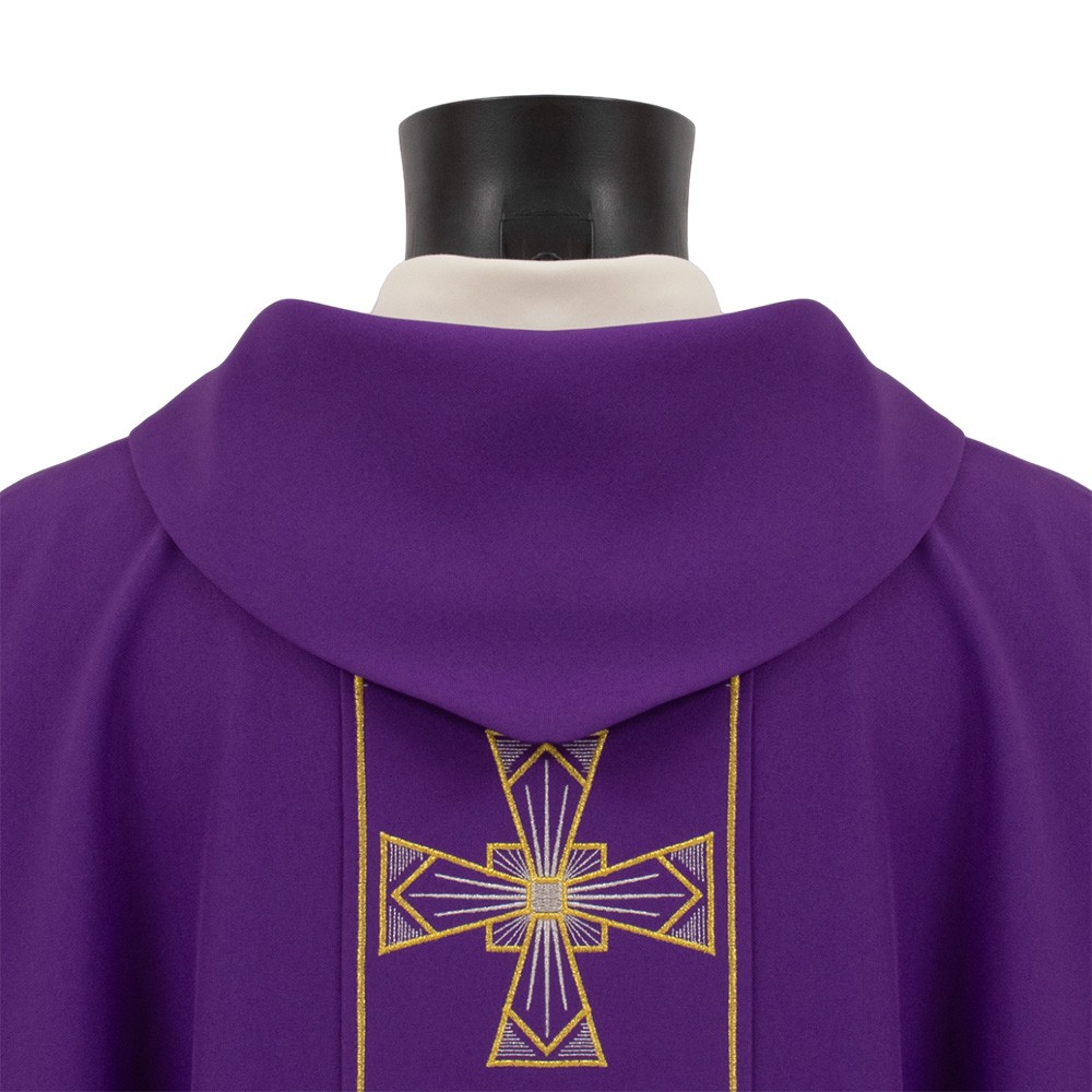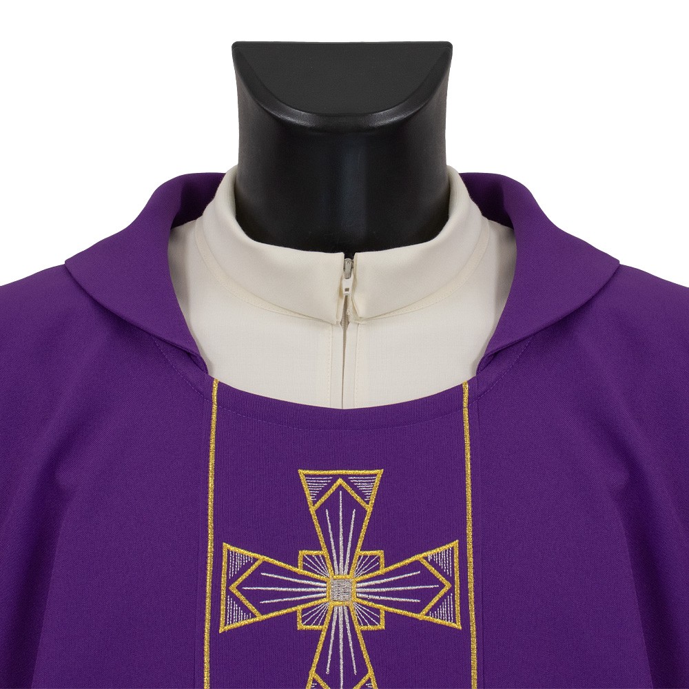 Casula da sacerdote viola anche per l'Avvento con stolone decorato e impreziosita da sbieco perimetrale color oro.