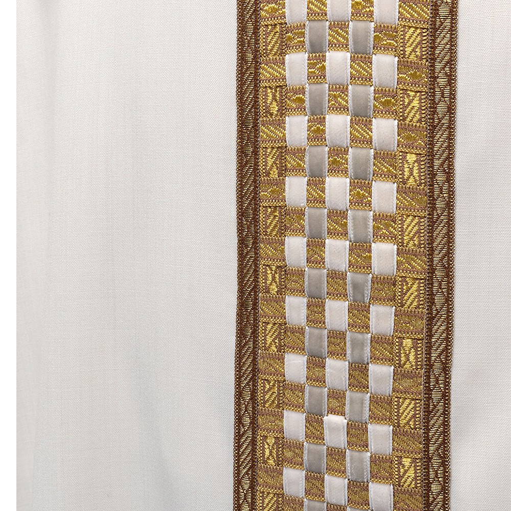 Grazie alla lavorazione, ai tessuti utilizzati di altissima qualità, al collo ad anello e all'ampio taglio il paramento liturgico risulta comodo da indossare.