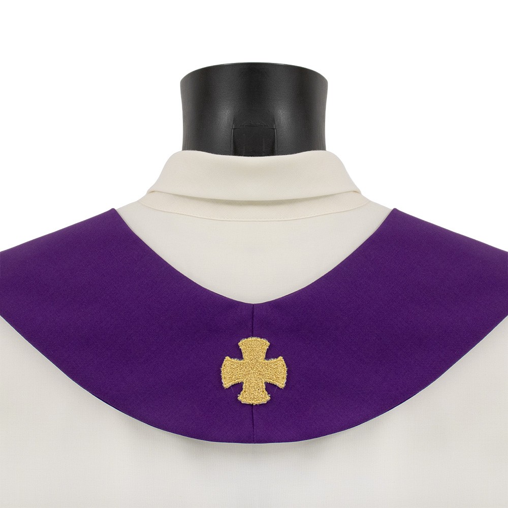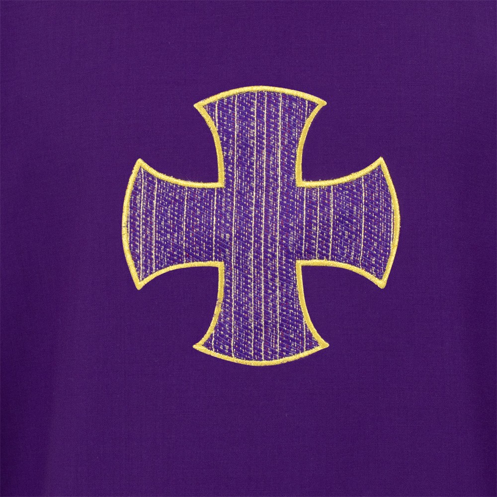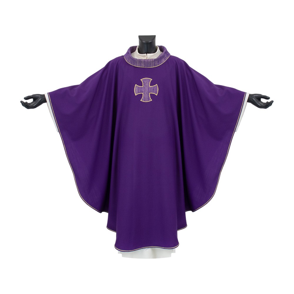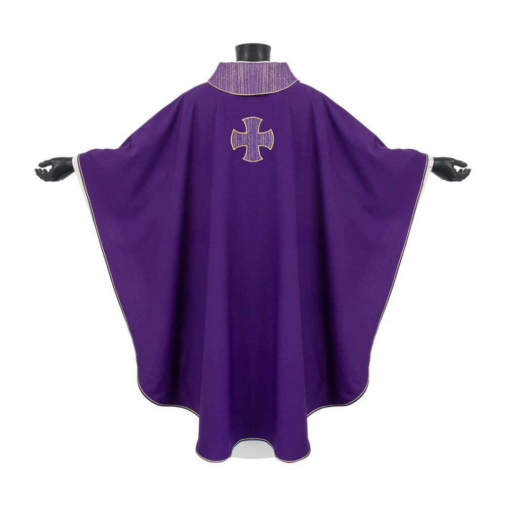 La casula è realizzata con collo ad anello, arricchita con croce ricamata a macchina posta sia sul fronte che sul retro.