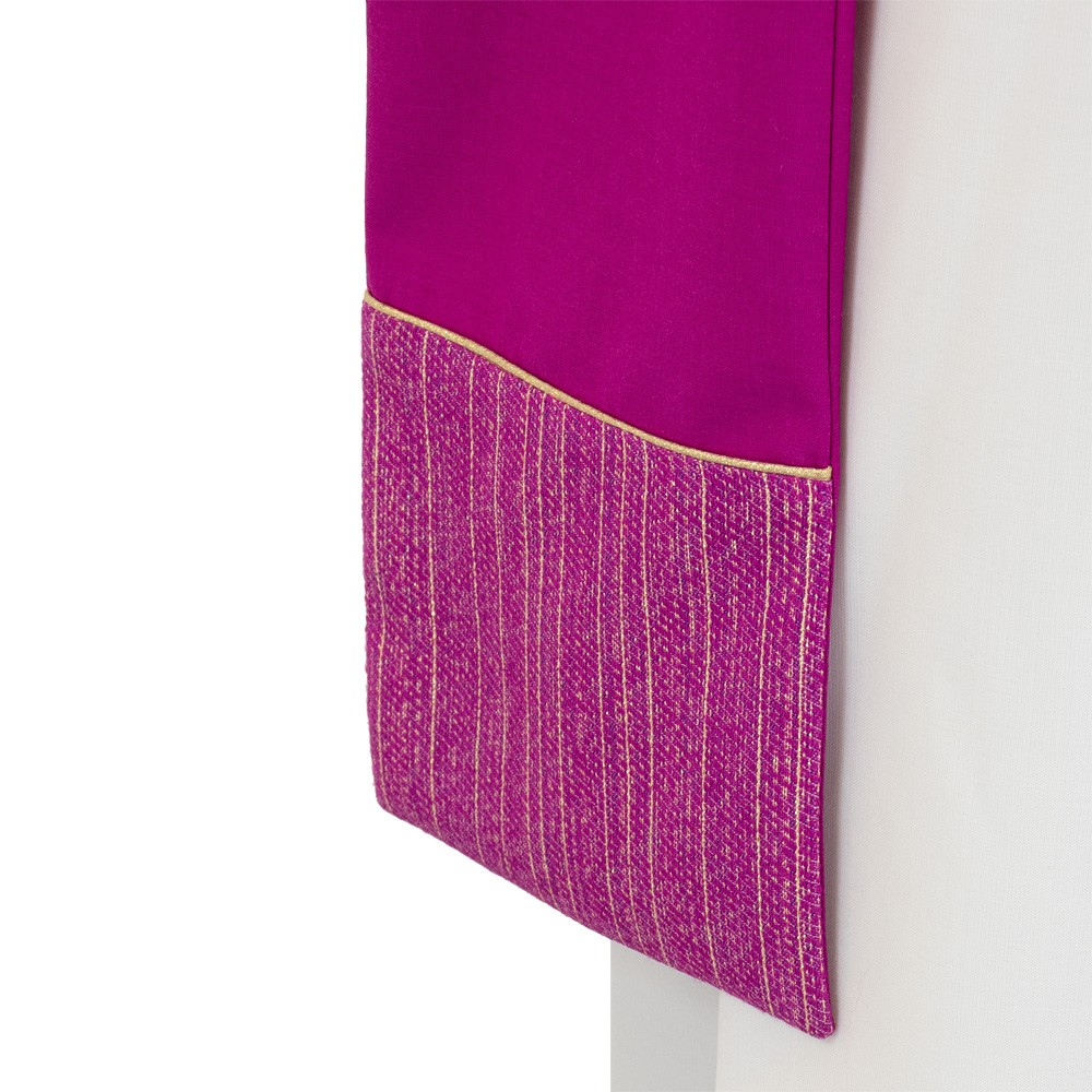 Lungo tutto il profilo della casula vi è uno sbieco dorato che rifinisce tutte le cuciture.