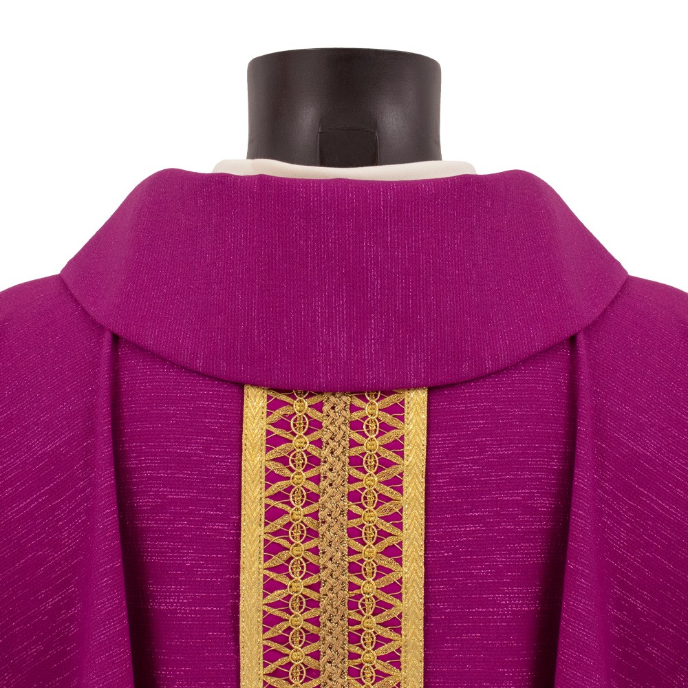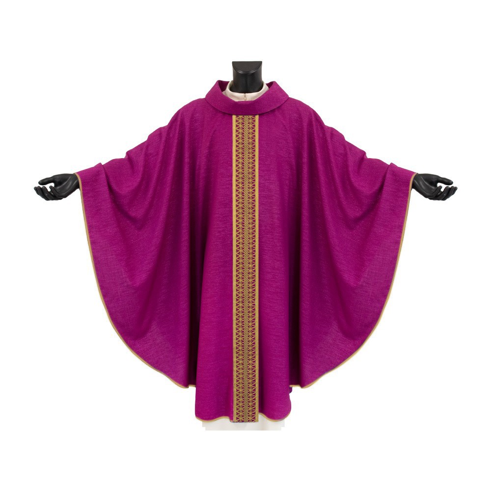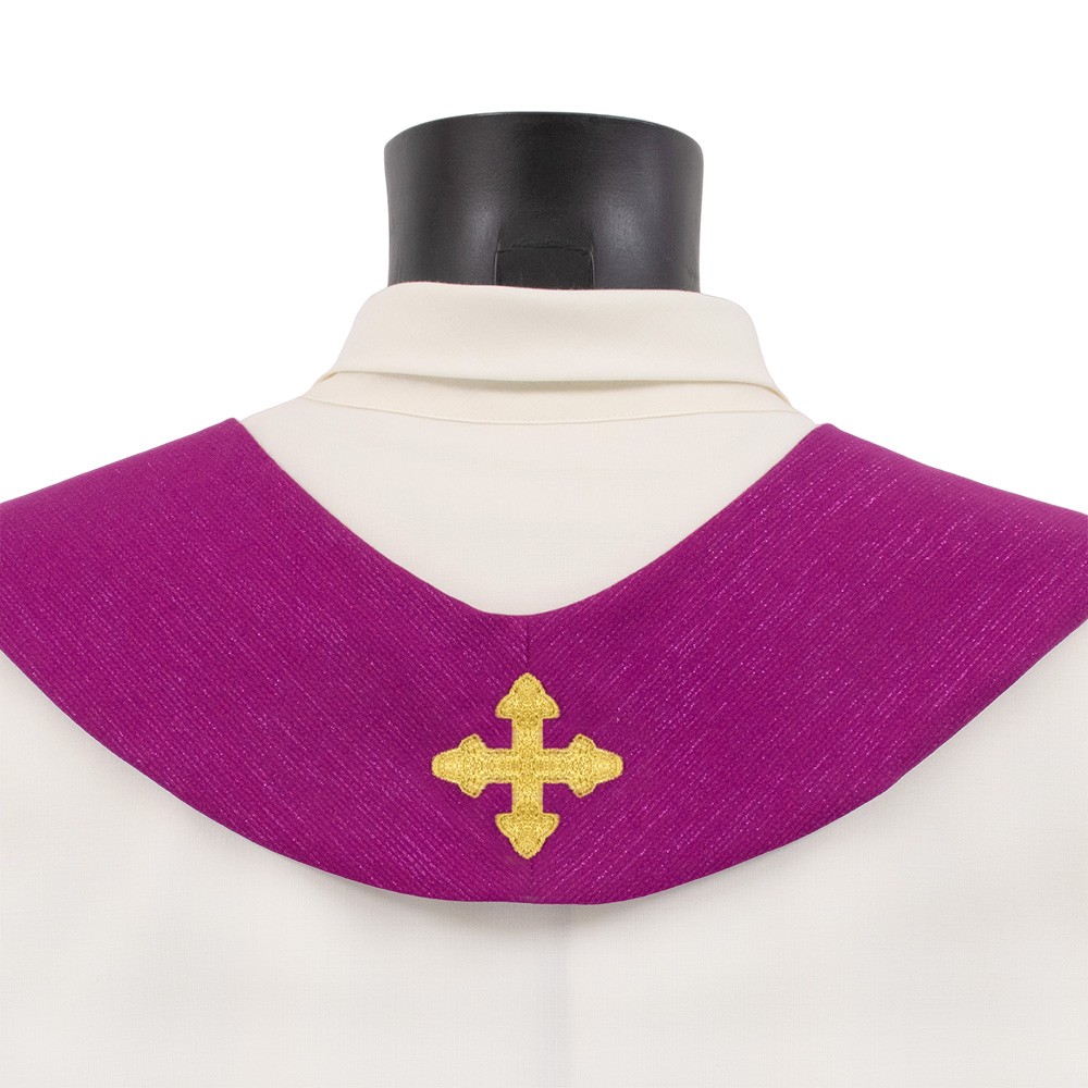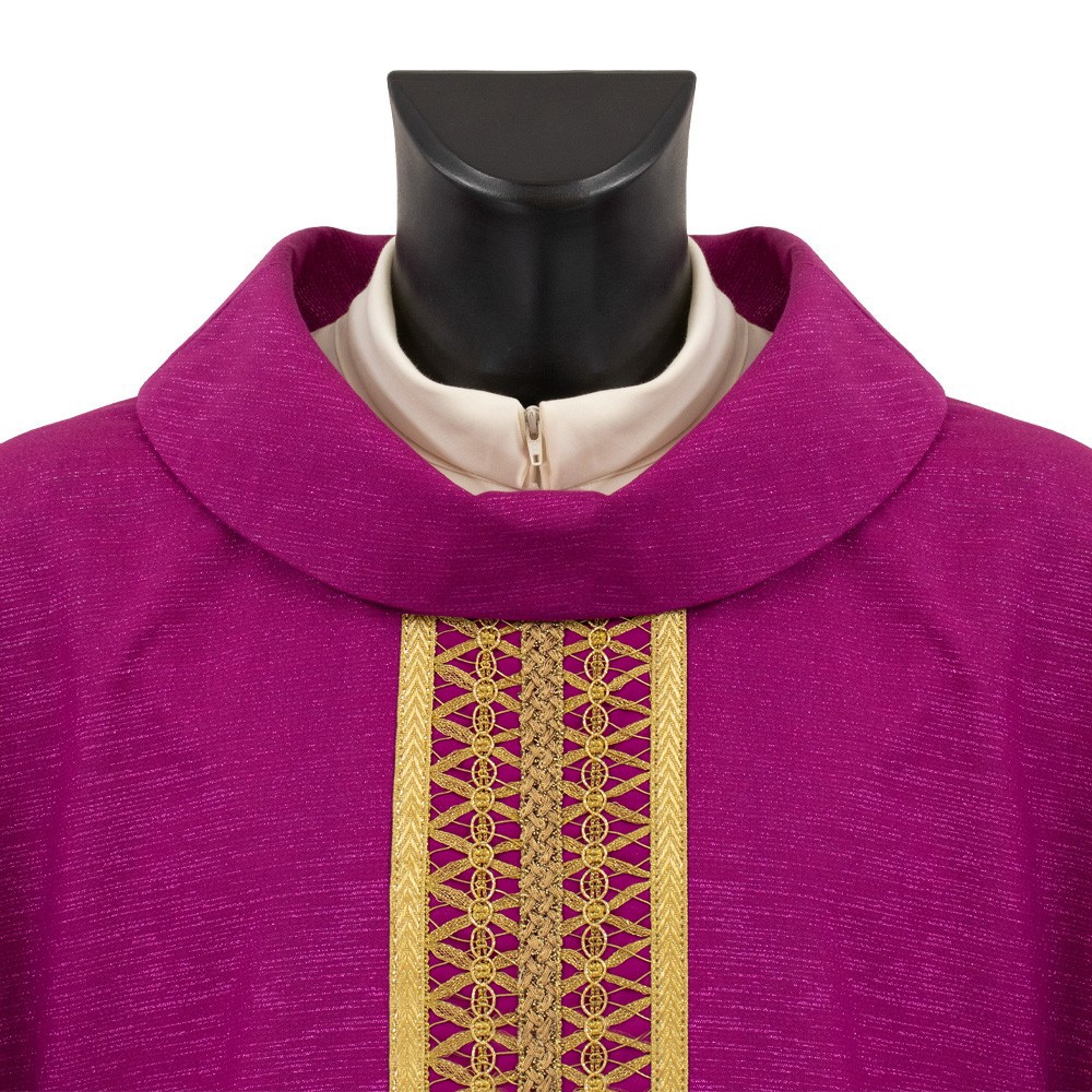 Casula liturgica MORELLO con collo ad anello e stolone finemente decorato.