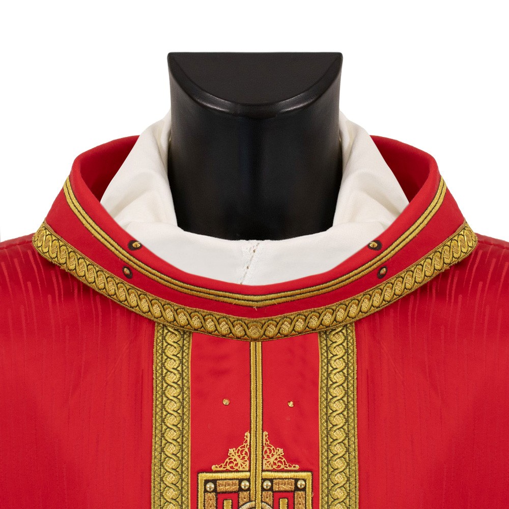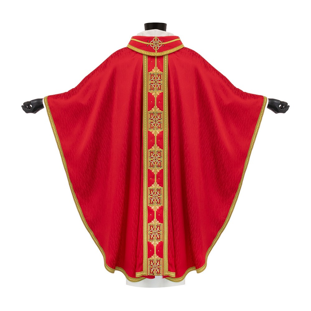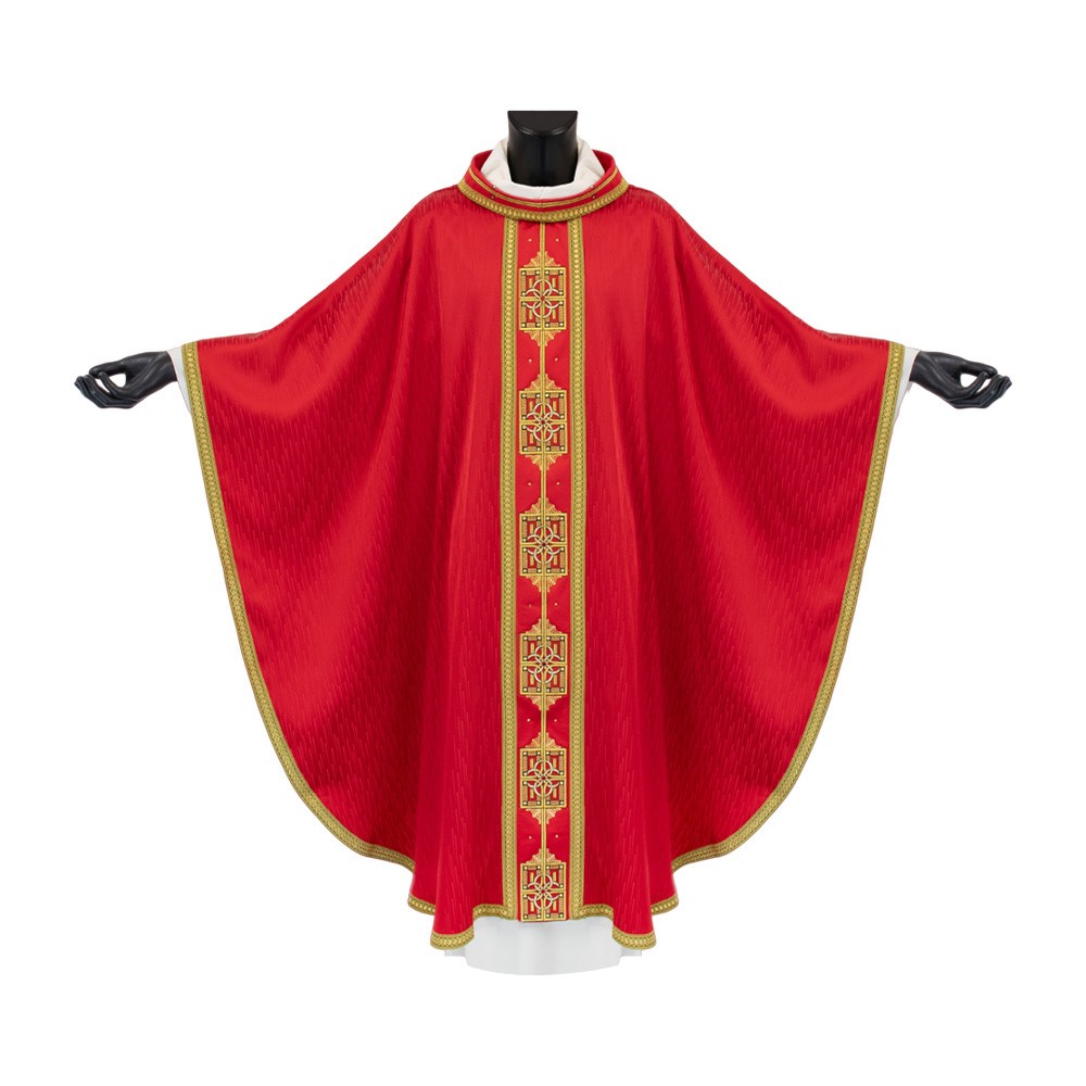 Casula sacerdotale in tessuto 100% poliestere, con banda in velluto.