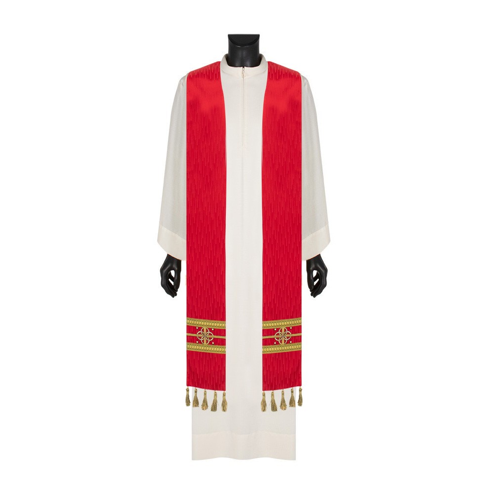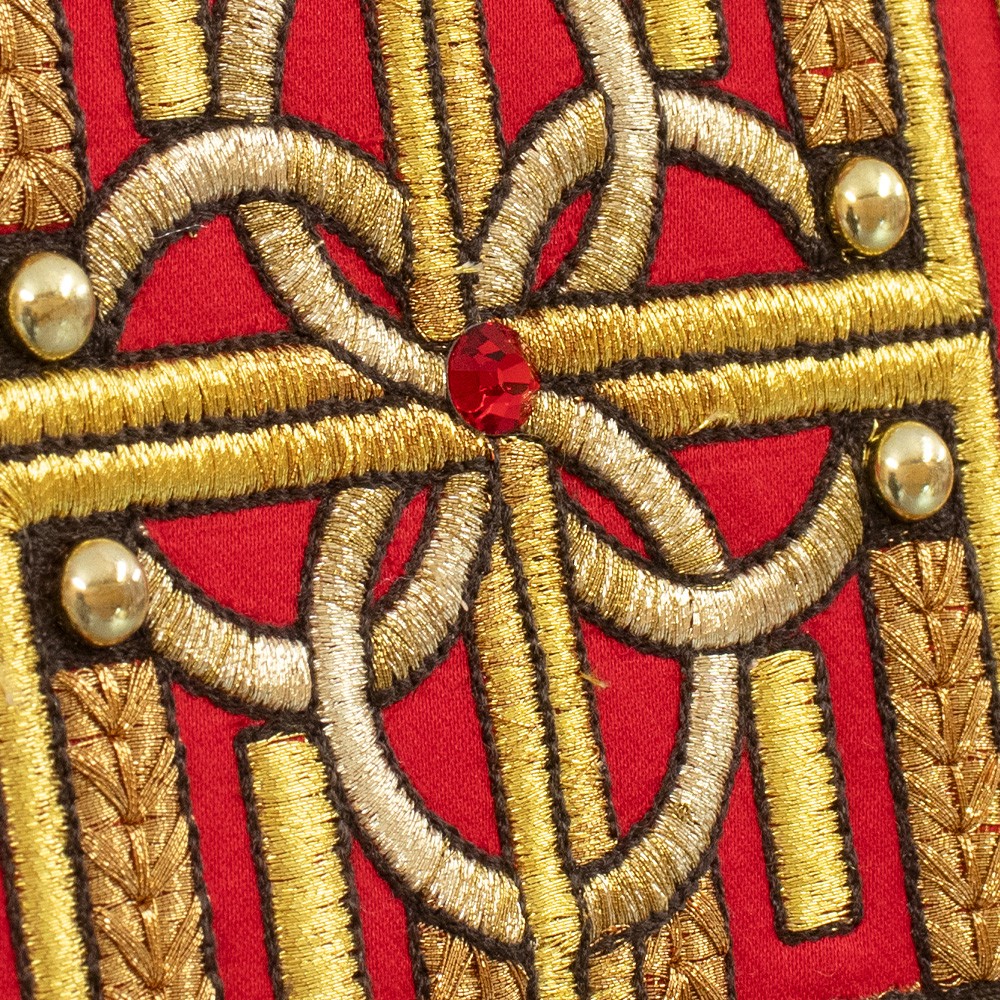 Il taglio ampio, il collo ad anello decorato, il tessuto utilizzato mettono il risalto la qualità e l'leganza di questa veste sacra.