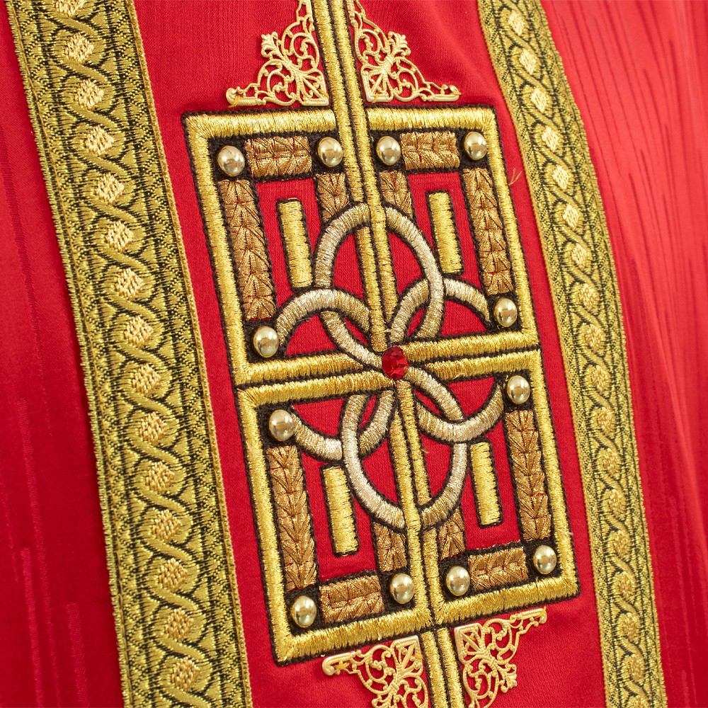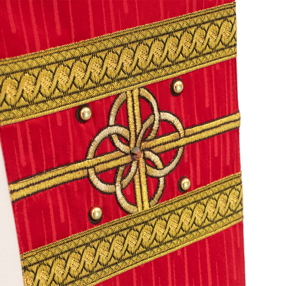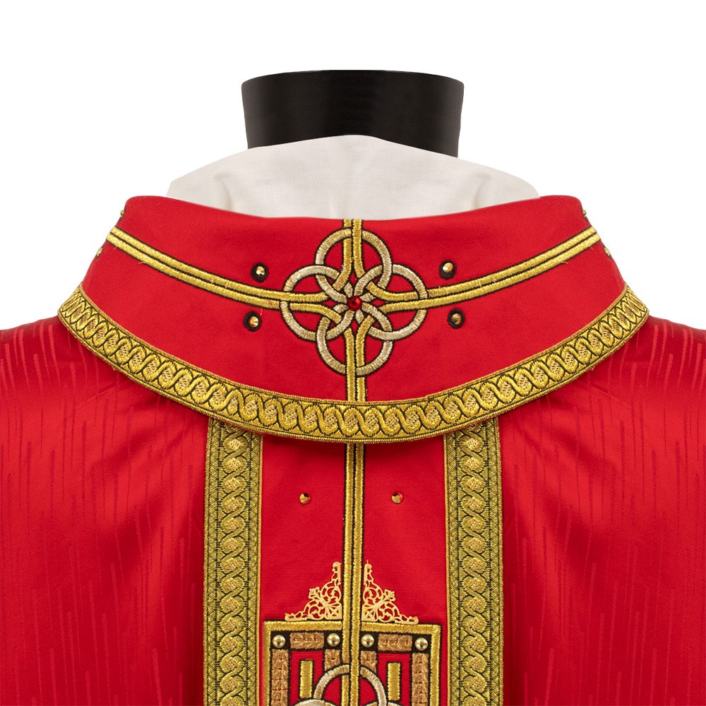 Meravigliosa casula liturgica con stolone finemente decorato con strass e agremani in oro.
