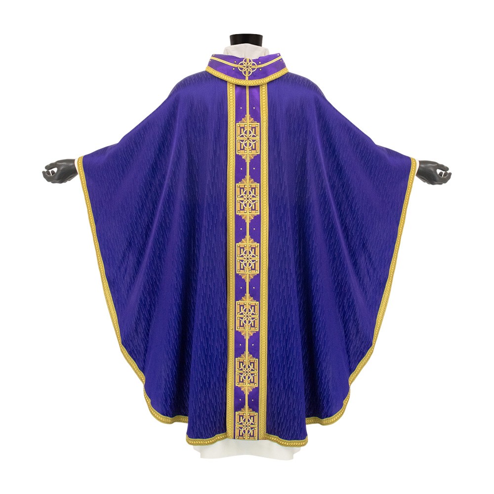 Eleganza e spiritualità si uniscono in questa casula viola, perfetta per le celebrazioni solenni.