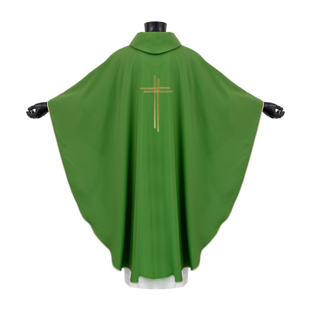 Casula sacerdotale in tessuto 100% poliestere, con banda in velluto.