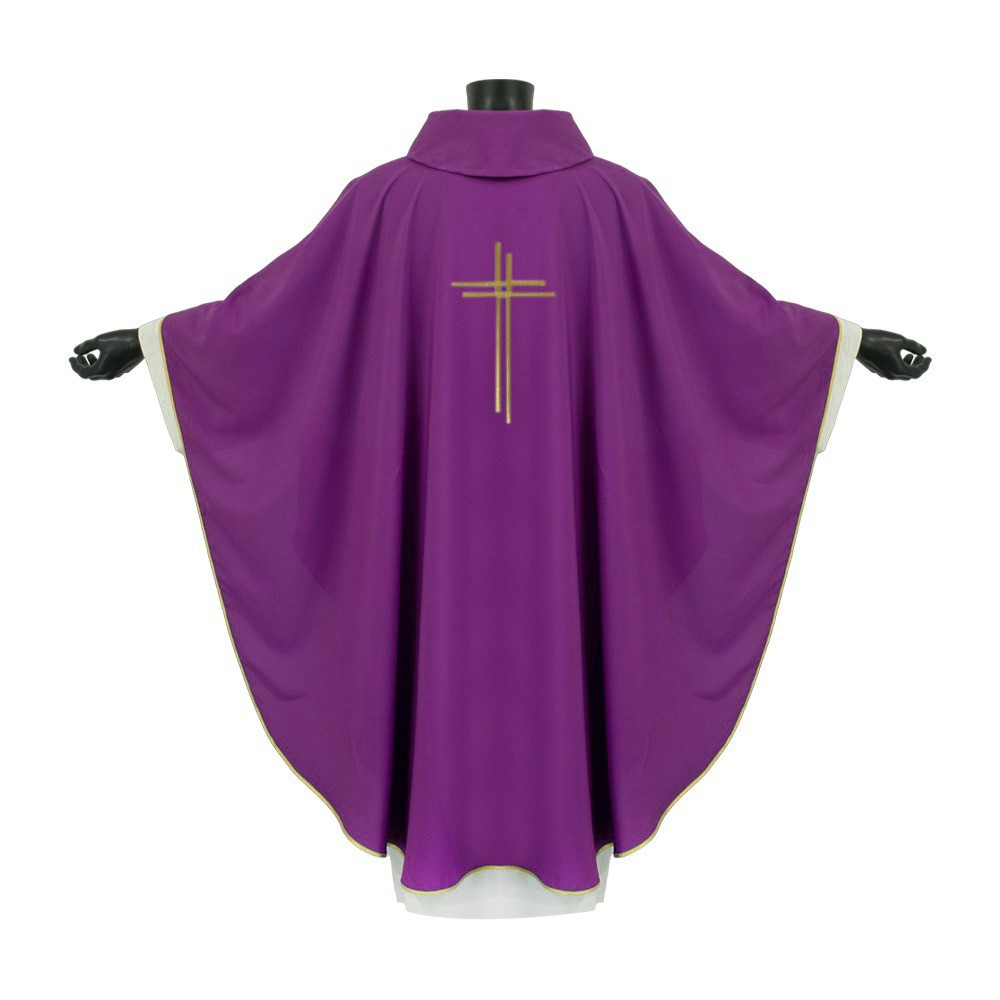 Casula liturgica morello realizzata in leggero tessuto 100% poliestere, perfetta per uso ordinario o per la celebrazione dell'Avvento.