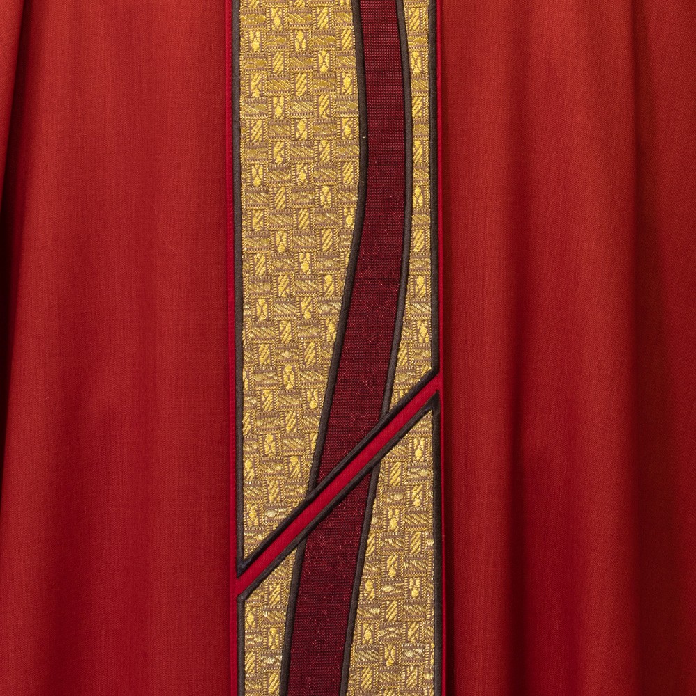 Casula liturgica rossa, con collo ad anello in tessuto 95% lana.