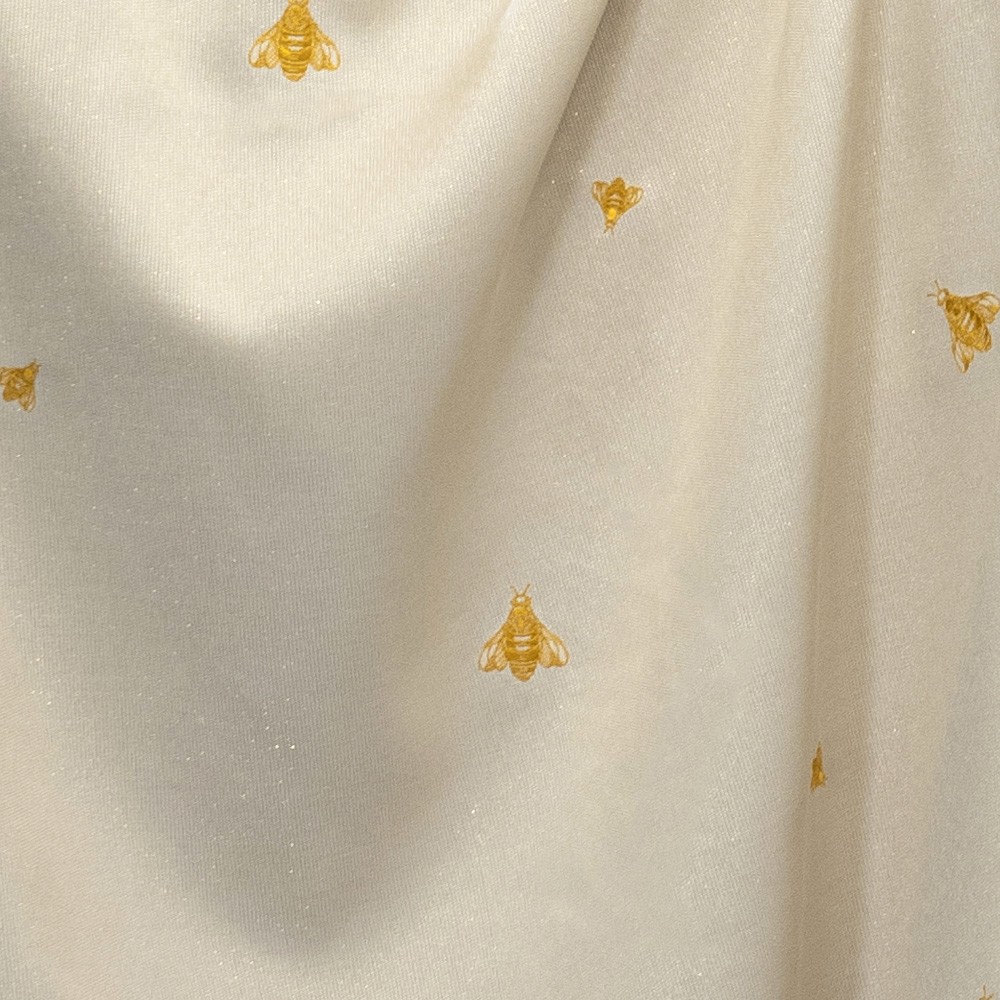 Sul manto e sul collo sono ricamate a mano api di varie dimensioni con filati dorati.