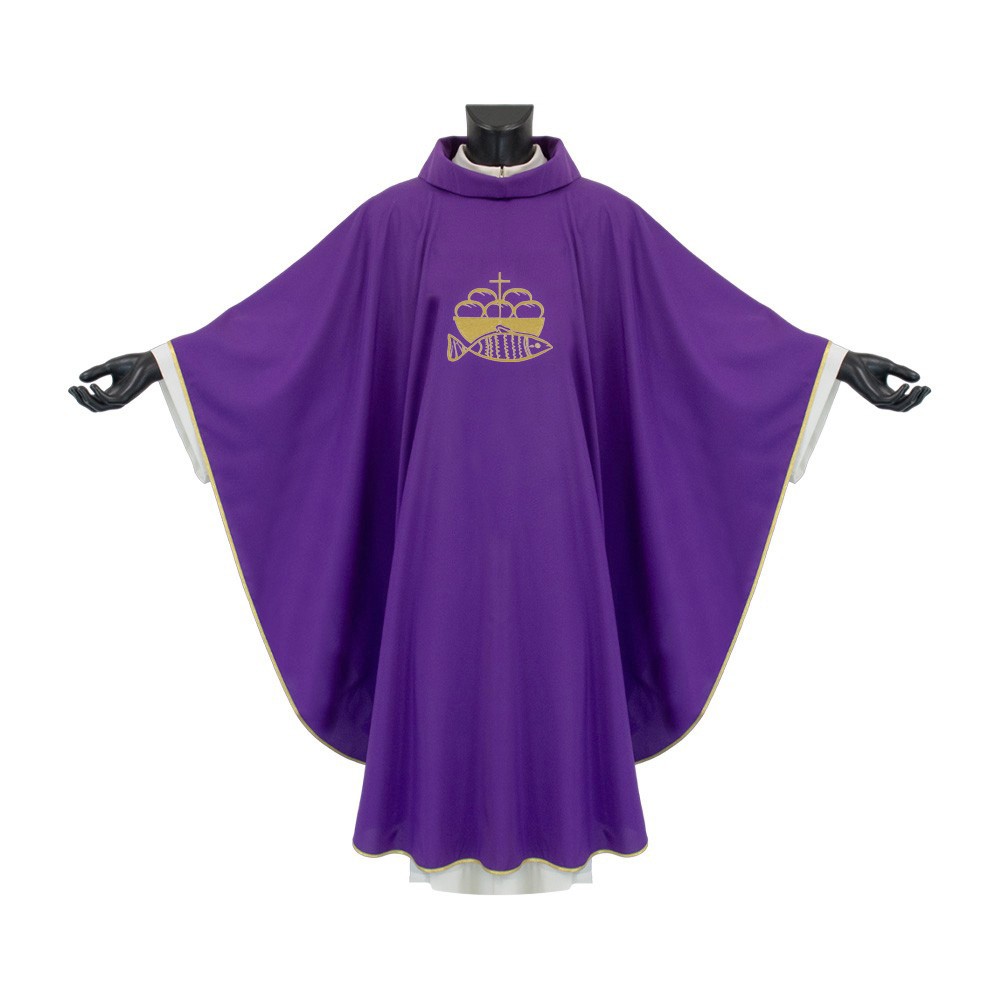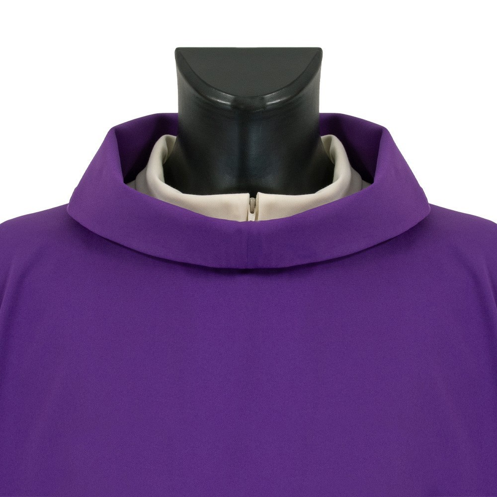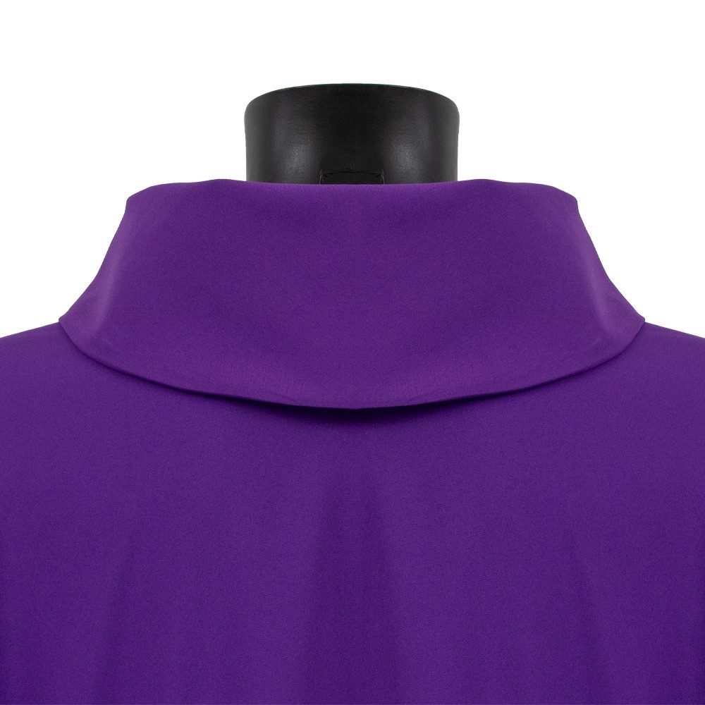 Casula liturgica viola realizzata in leggero tessuto 100% poliestere, perfetta per uso ordinario.