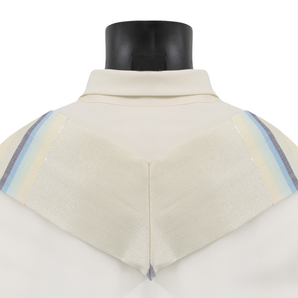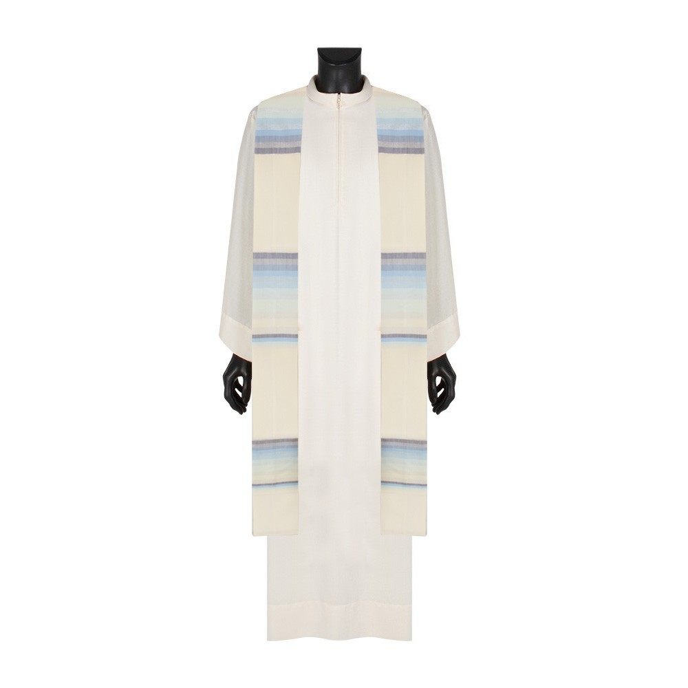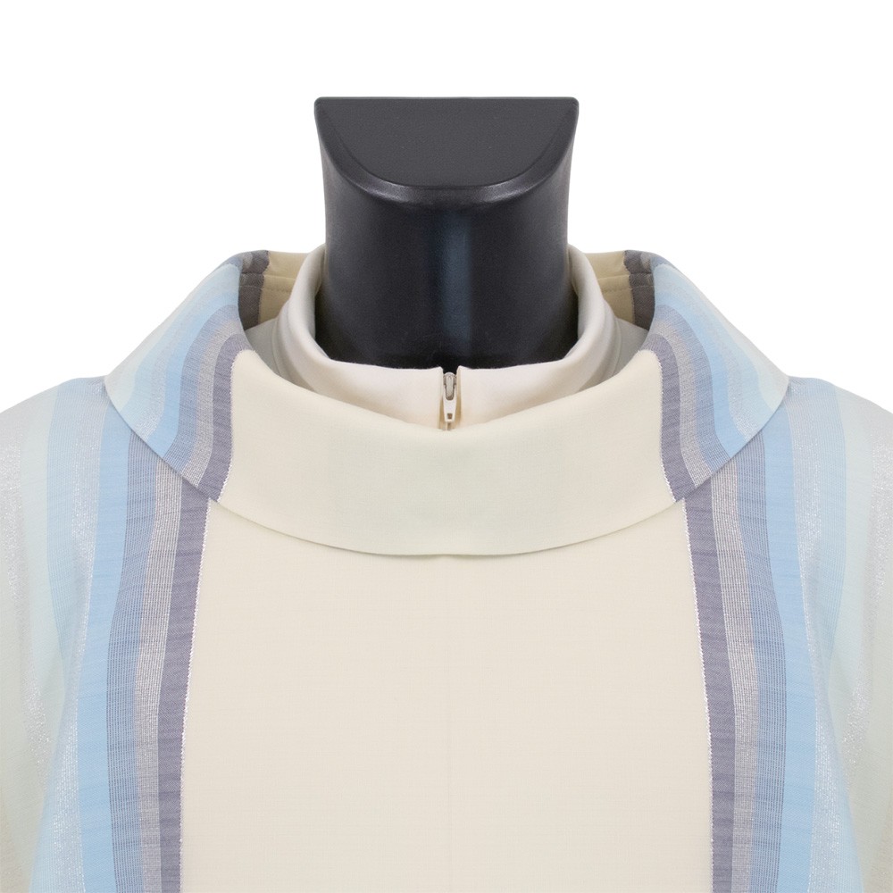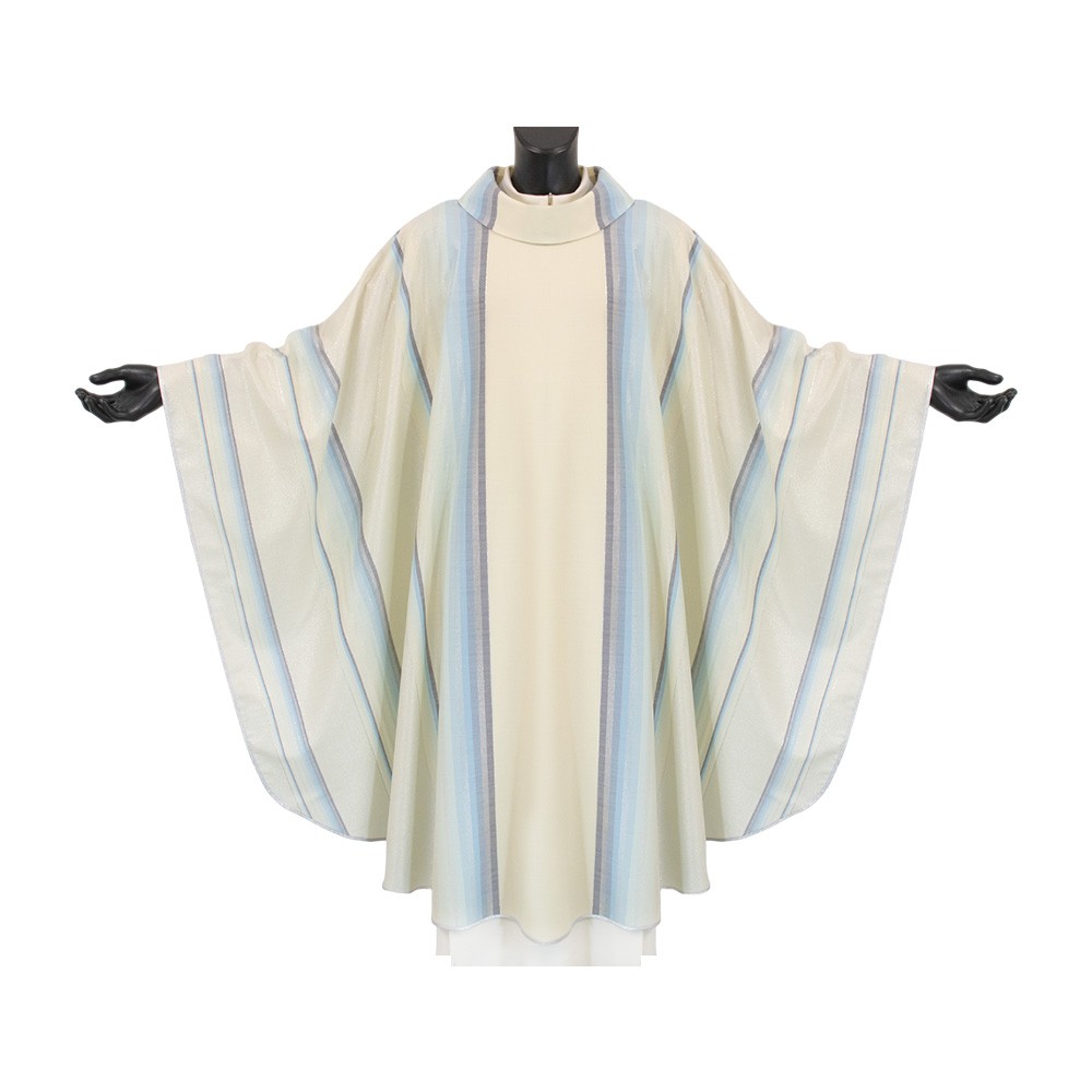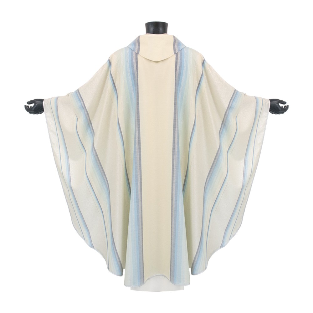 Casula sacerdotale Mariana in tessuto rigato in misto lana, viscosa e poliestere.