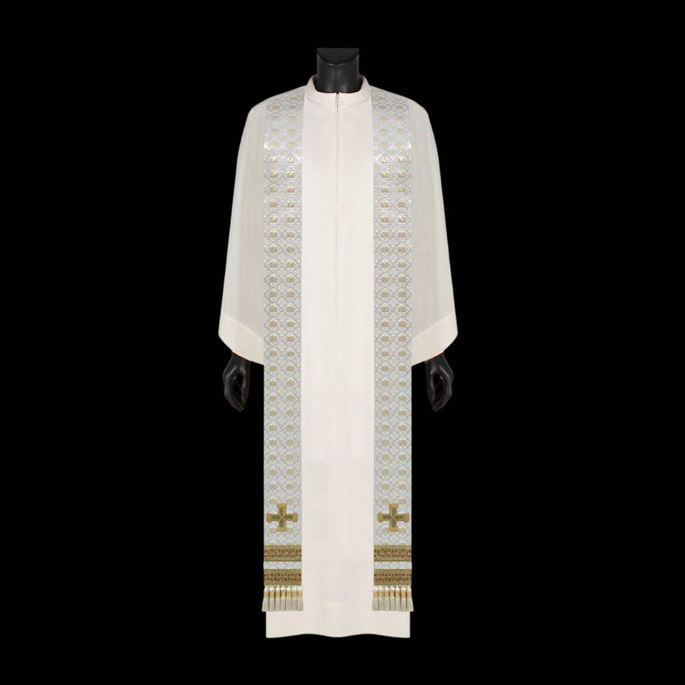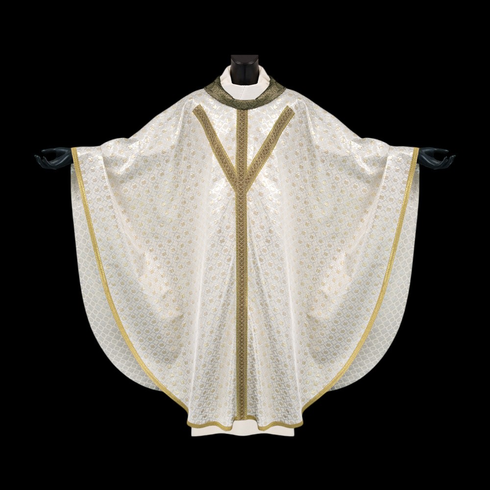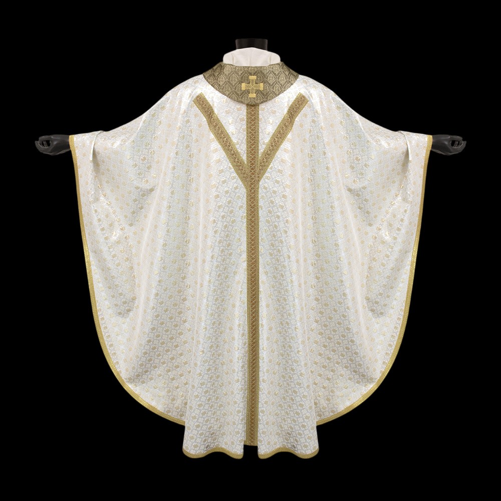 Questo paramento liturgico si distingue per il suo design raffinato e i dettagli esclusivi: