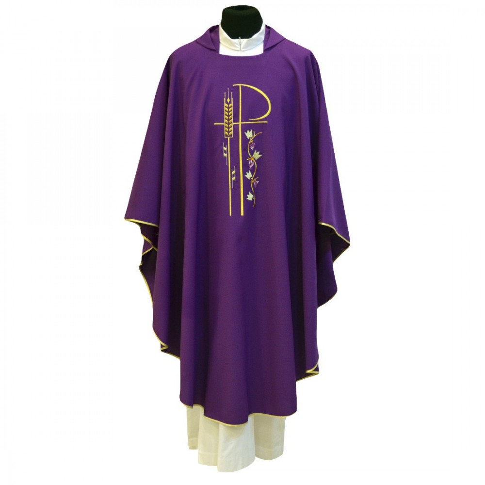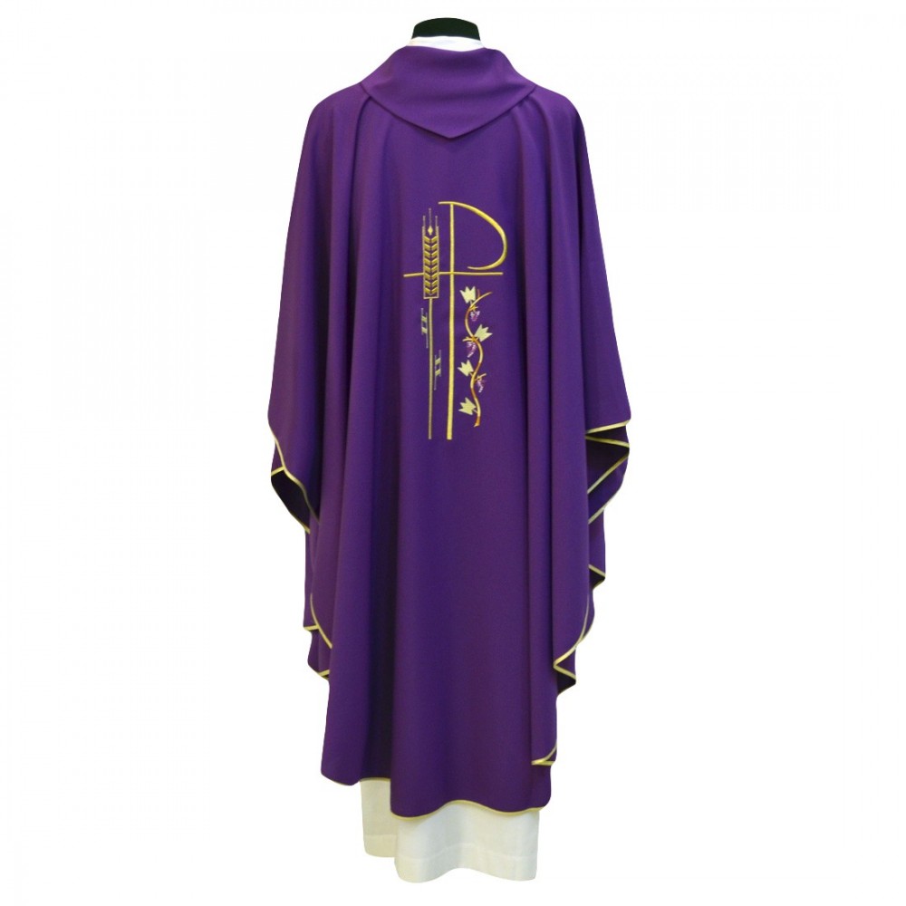Casula sacerdotale tessuto 100% poliestere con ricamo diretto. Completa di stola. Paramento sacro realizzato da un'azienda italiana, garantendo materiali e lavorazioni di prima scelta. Disponibile nei colori liturgici.