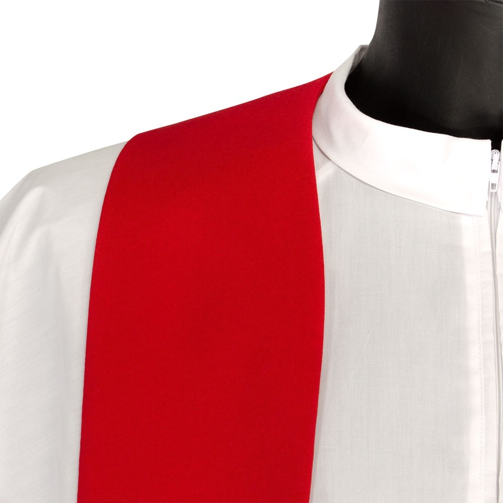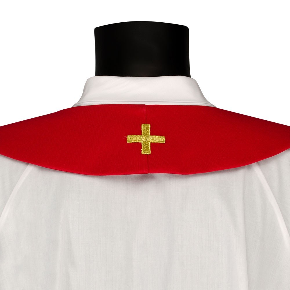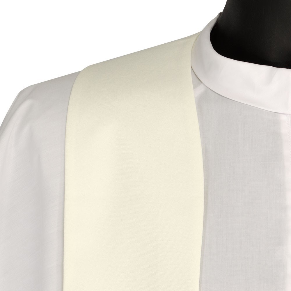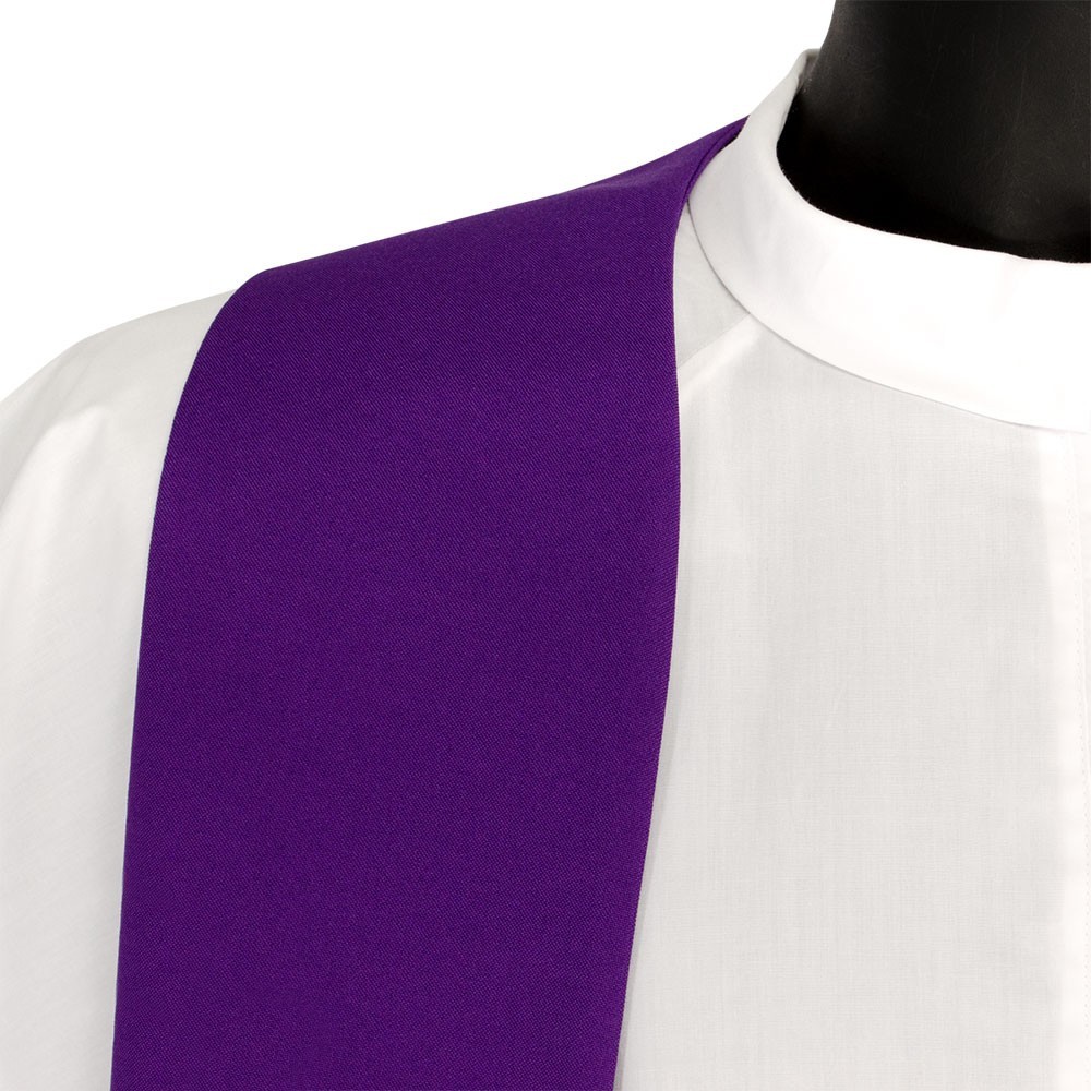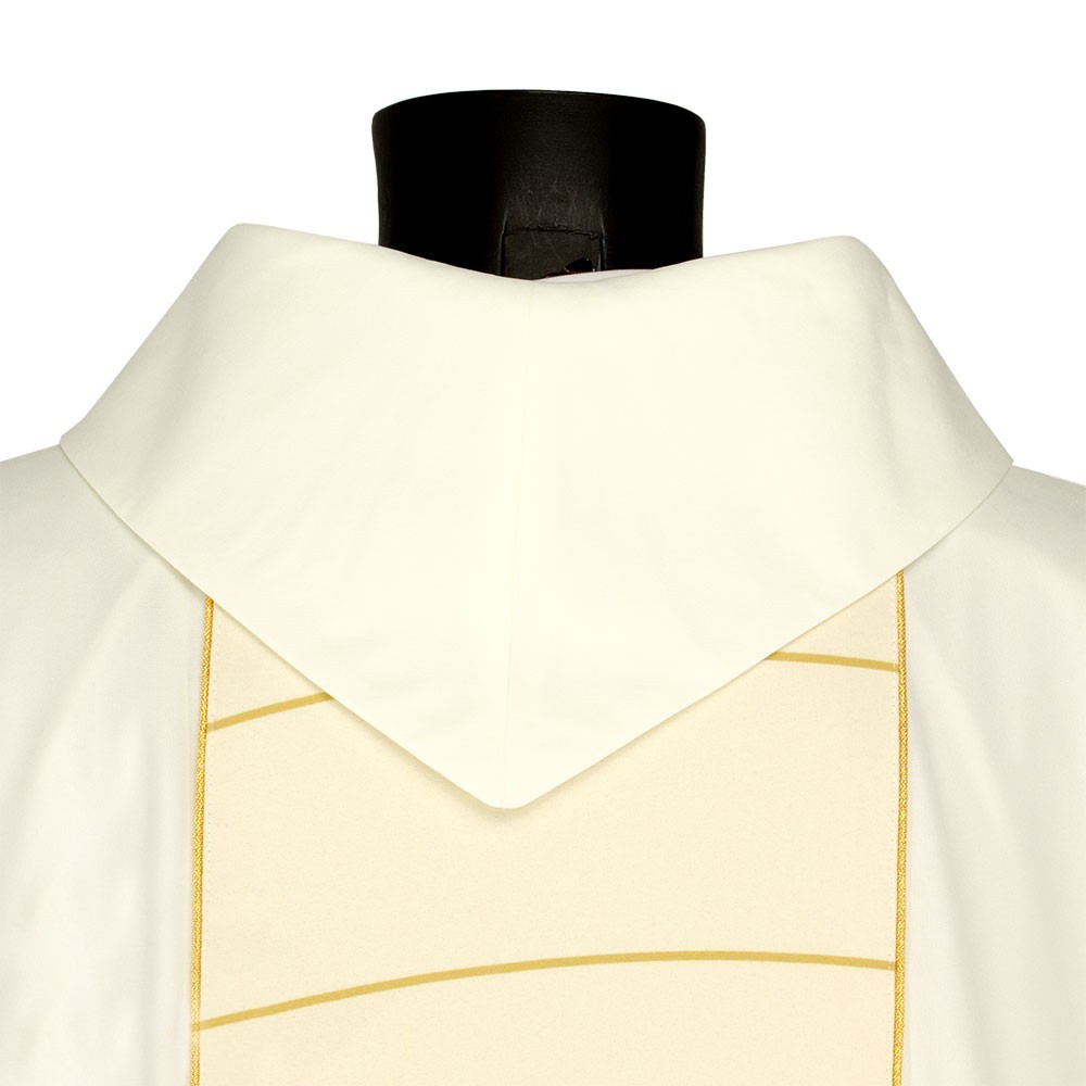 La casula è confezionata in tessuto misto con croci ricamate oro. Modello con collo ad anello e stola abbinata inclusa.