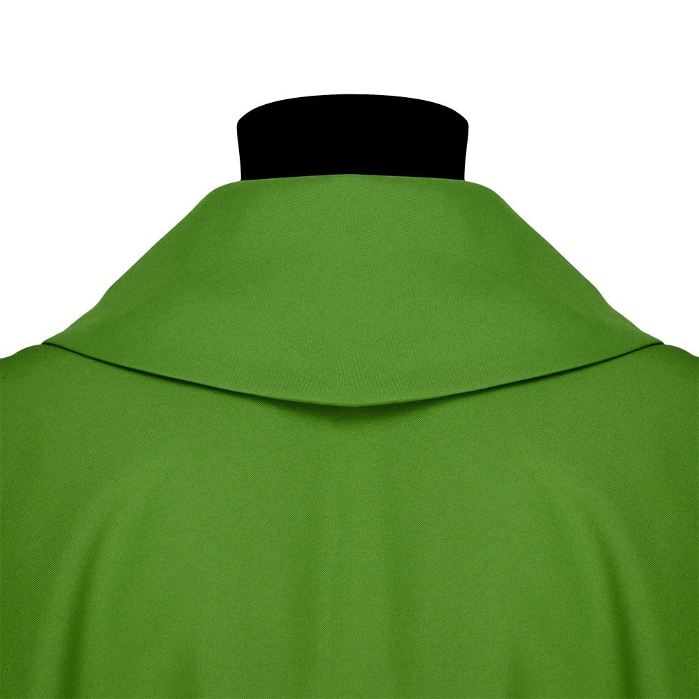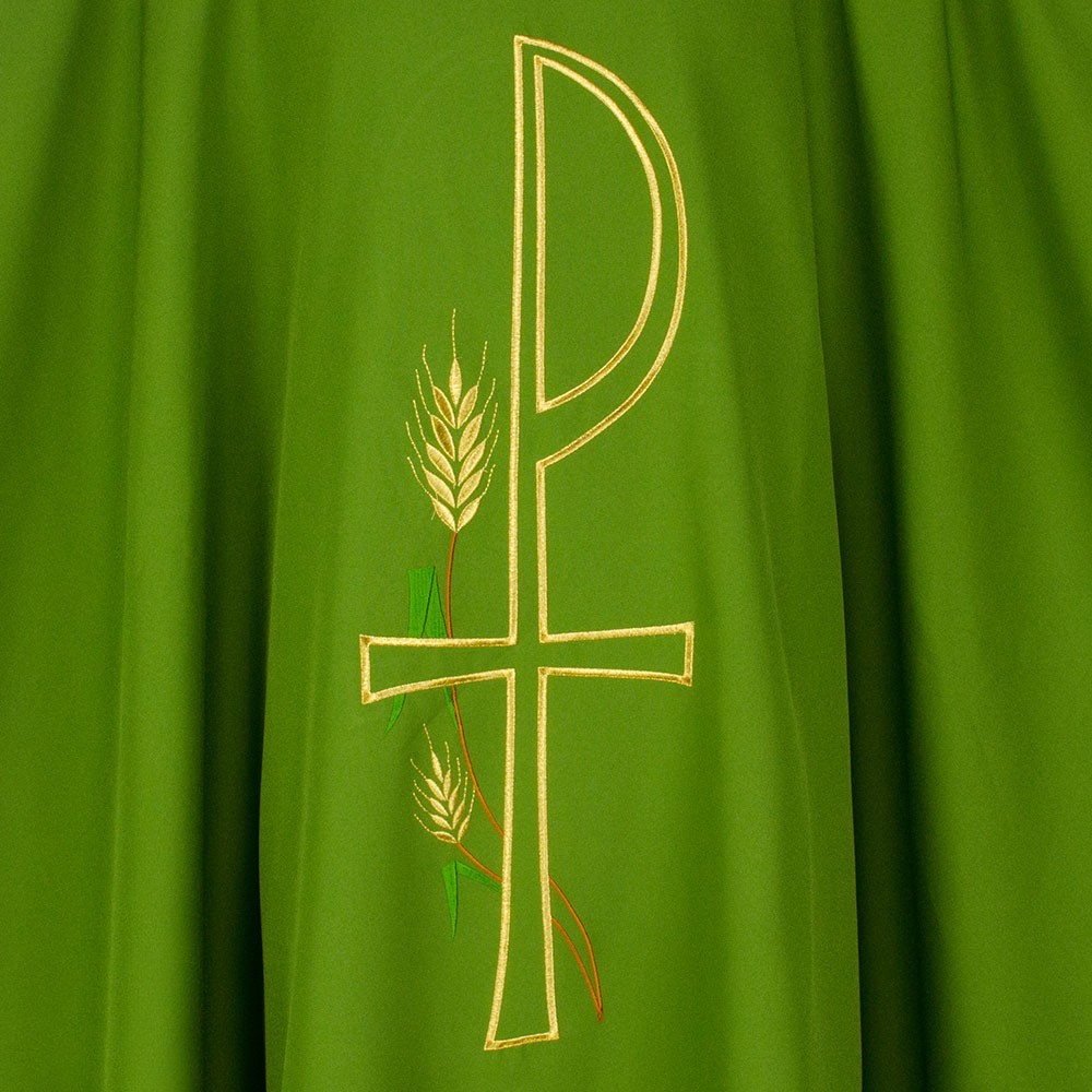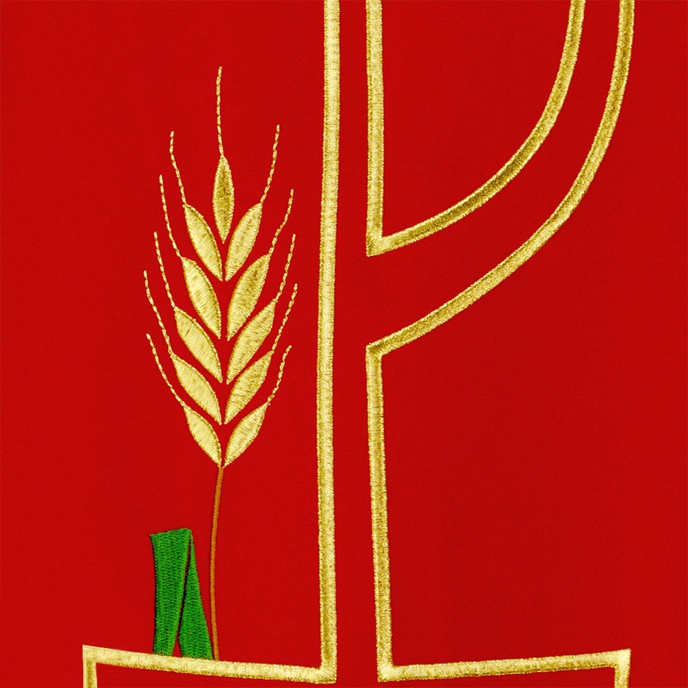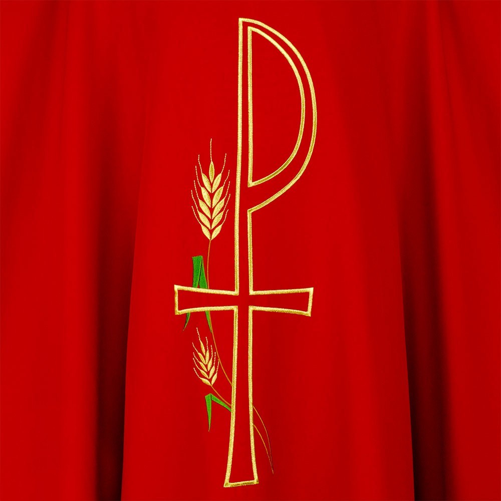 In fresco e leggero tessuto in poliestere. Questa veste liturgica è finemente ricamata, presente sia sul fronte che sul retro. Taglio classico e rifinita con sbieco perimetrale dorato. Completa di stola. La casula è prodotta interamente in Italia, garantendo tessuti dio ottima qualità.