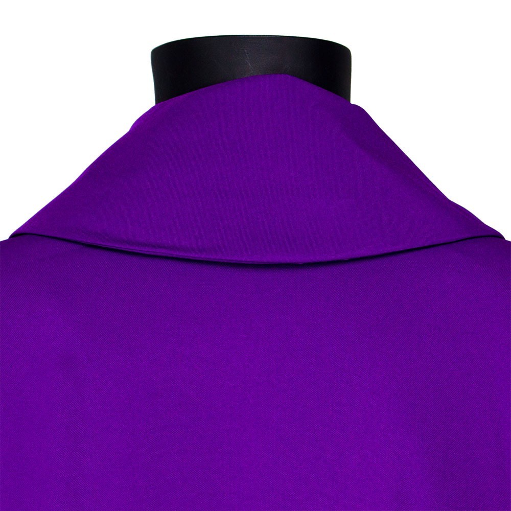 Casula viola sacerdotale con decorazioni ricamate.