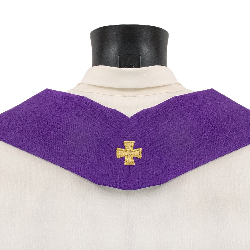 Casula Mariana con ricamo personalizzato a macchina, confezionata in fresco e traspirante tessuto in poliestere.