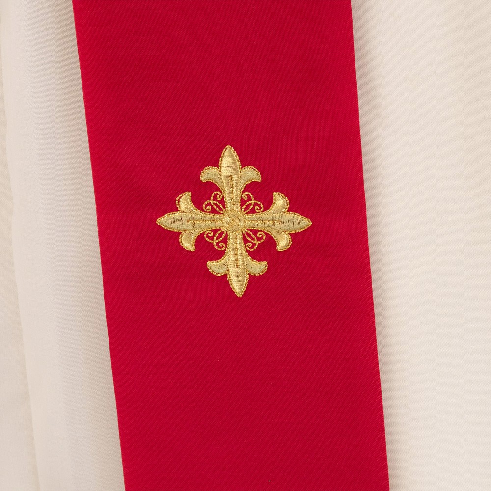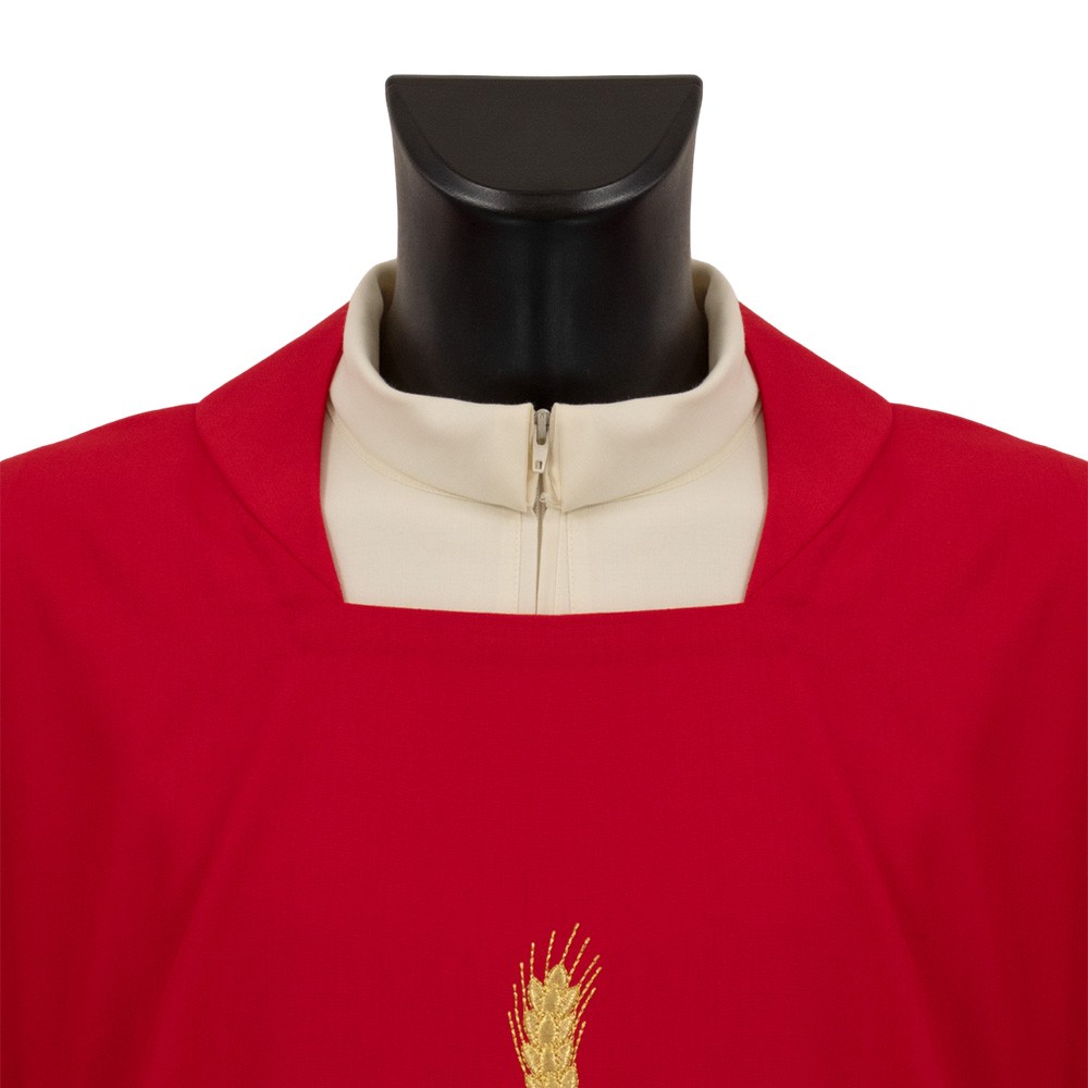 Questo paramento sacro è confezionato in pregiato tessuto misto lana (55% poliestere e 45% lana), completa di stola abbinata. Ideato e lavorato interamente in Italia, garantendo lavorazione e tessuti di ottima qualità.