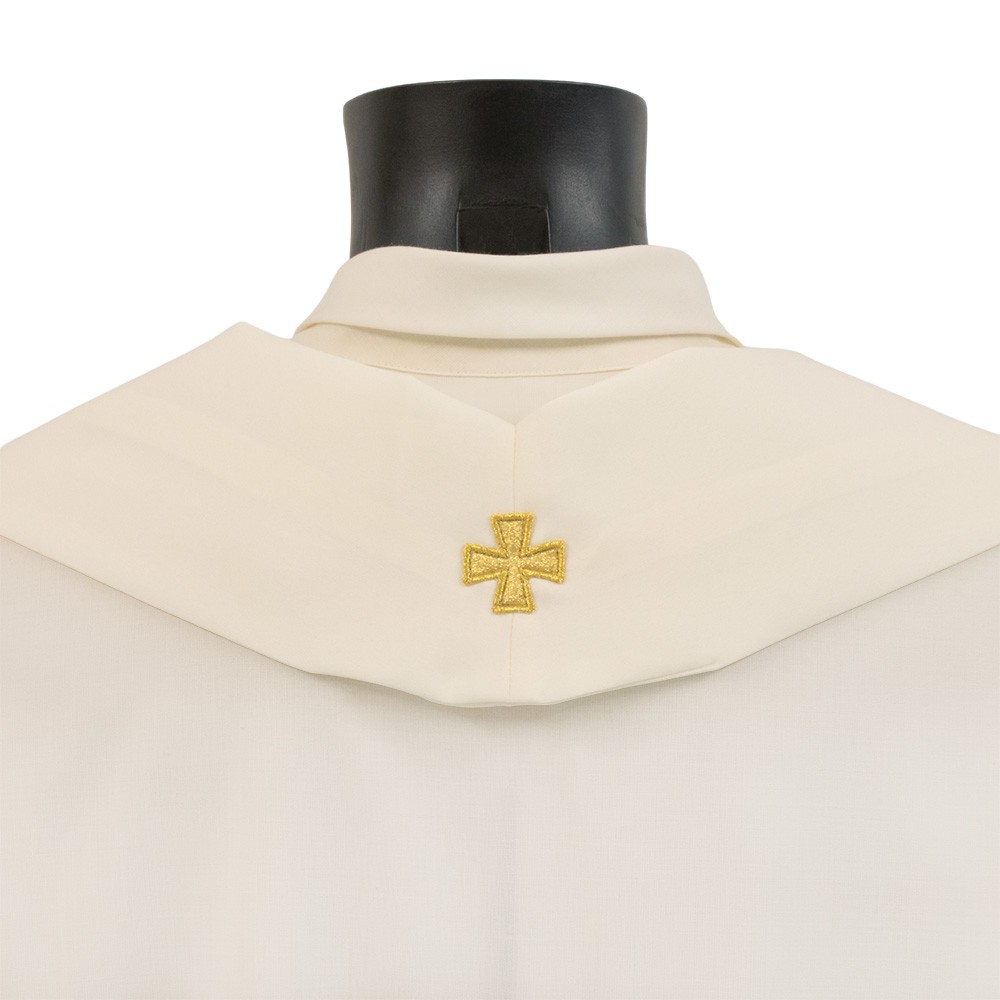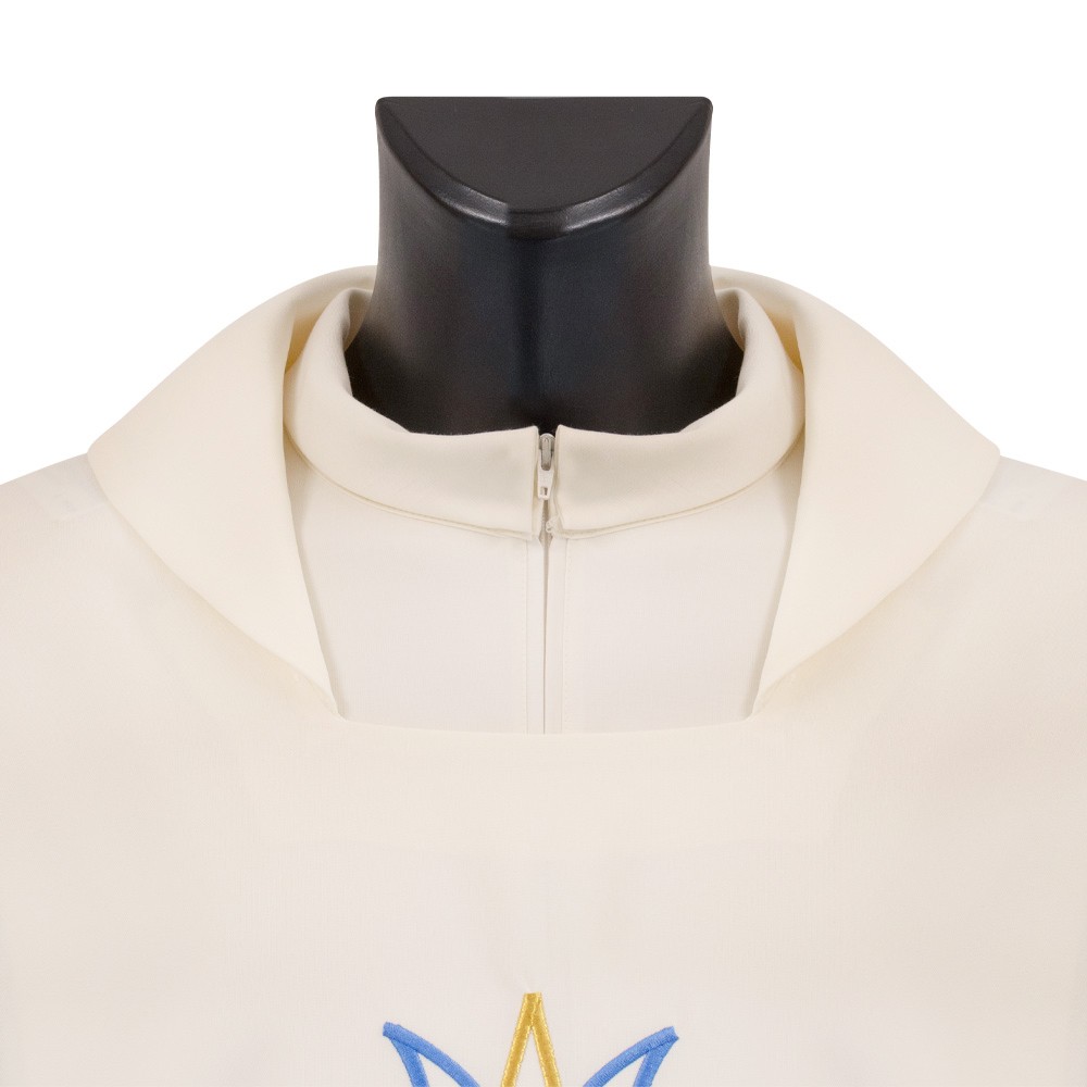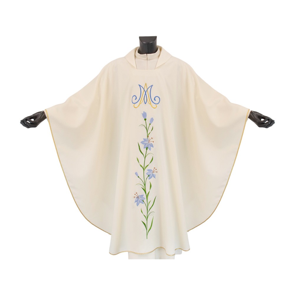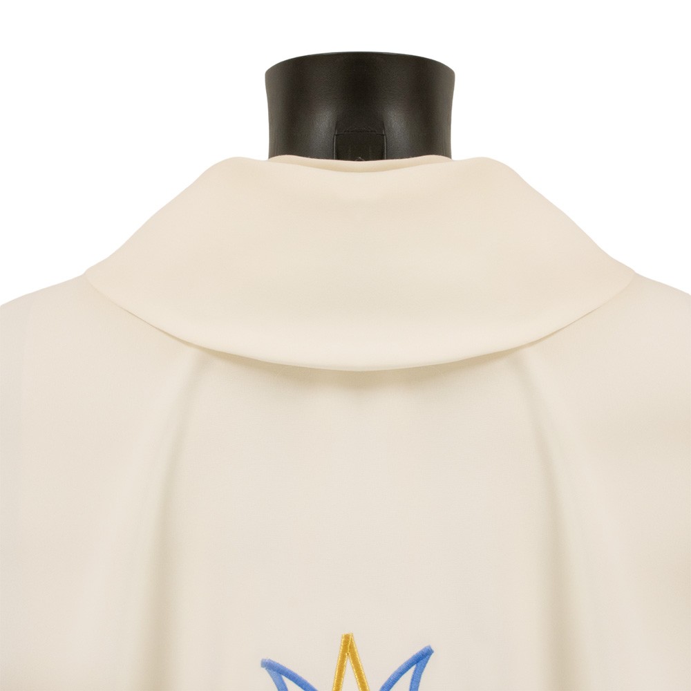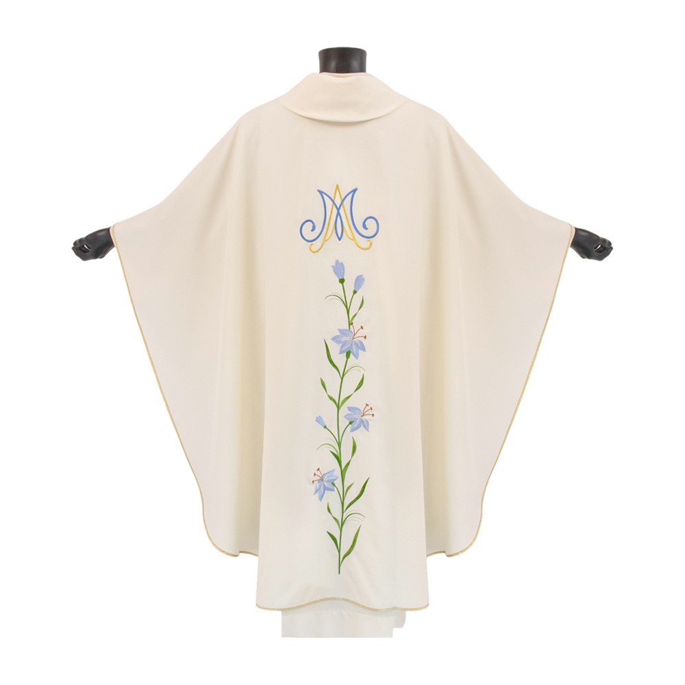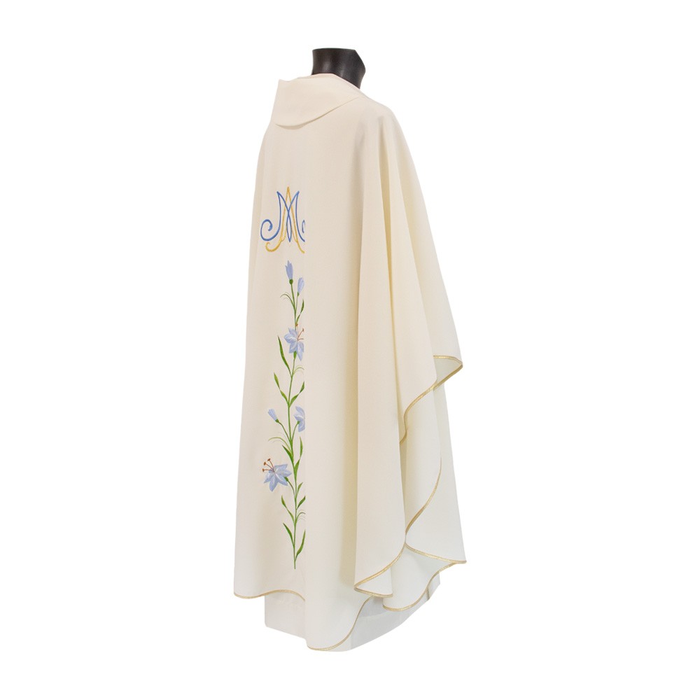 Casula mariana in poliestere con ricamo eseguito finemente a macchina.